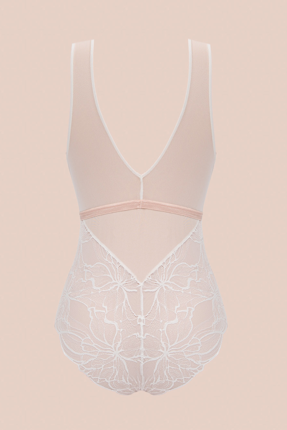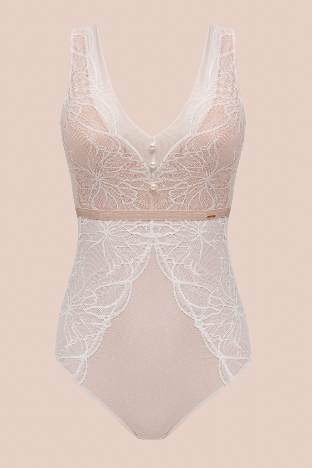 Изящное боди Fizzy Delight из элегантного кружева и эластичного тюля телесного цвета. Прекрасно смотрится на женской фигуре. Может быть роскошным дополнением к вечернему образу.