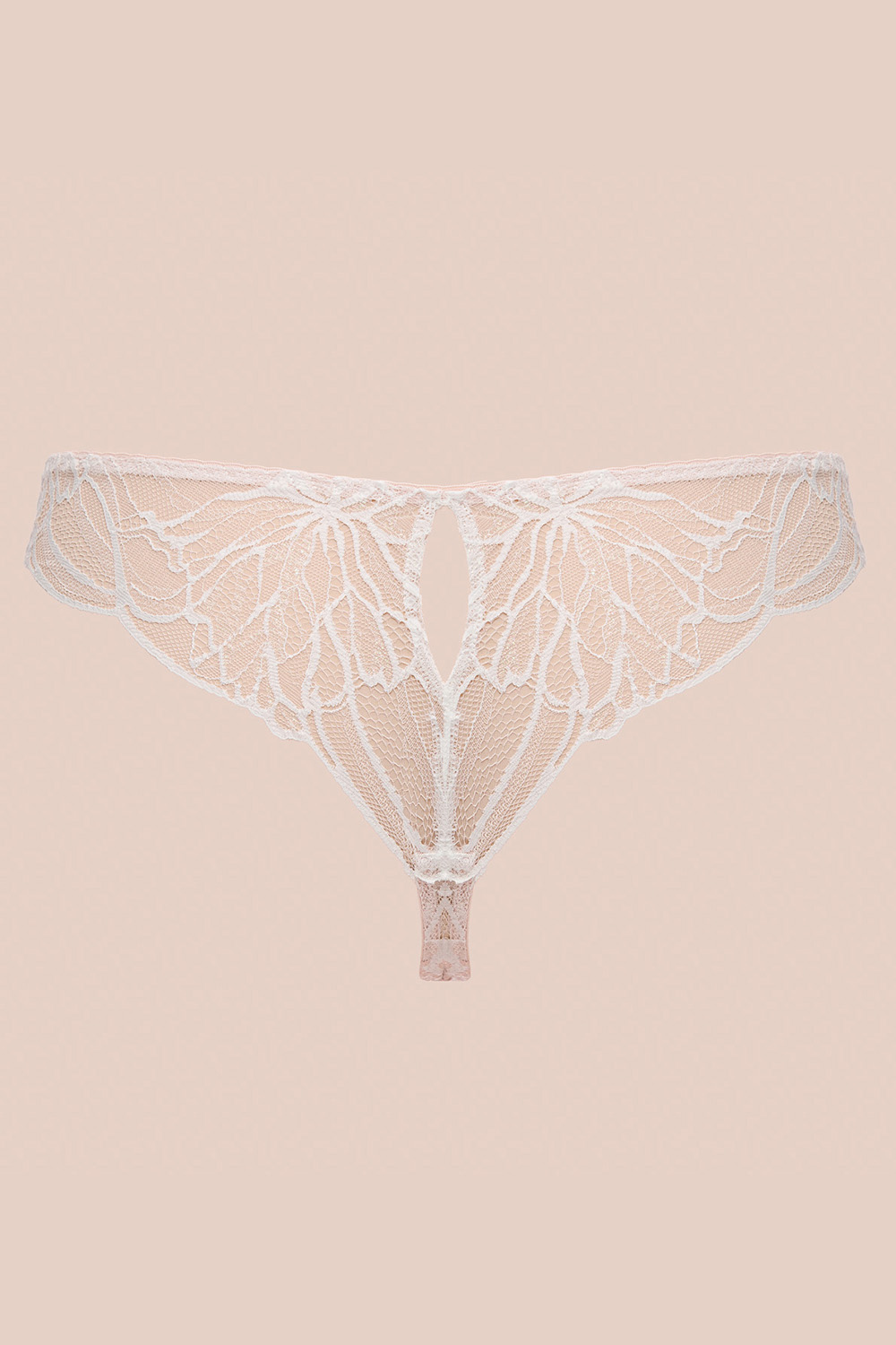 Кружевные трусики-стринги Fizzy Delight со средней линией талии и широким бочком. Нежное цветочное кружево декорировано блеском. Ластовица хлопковая.