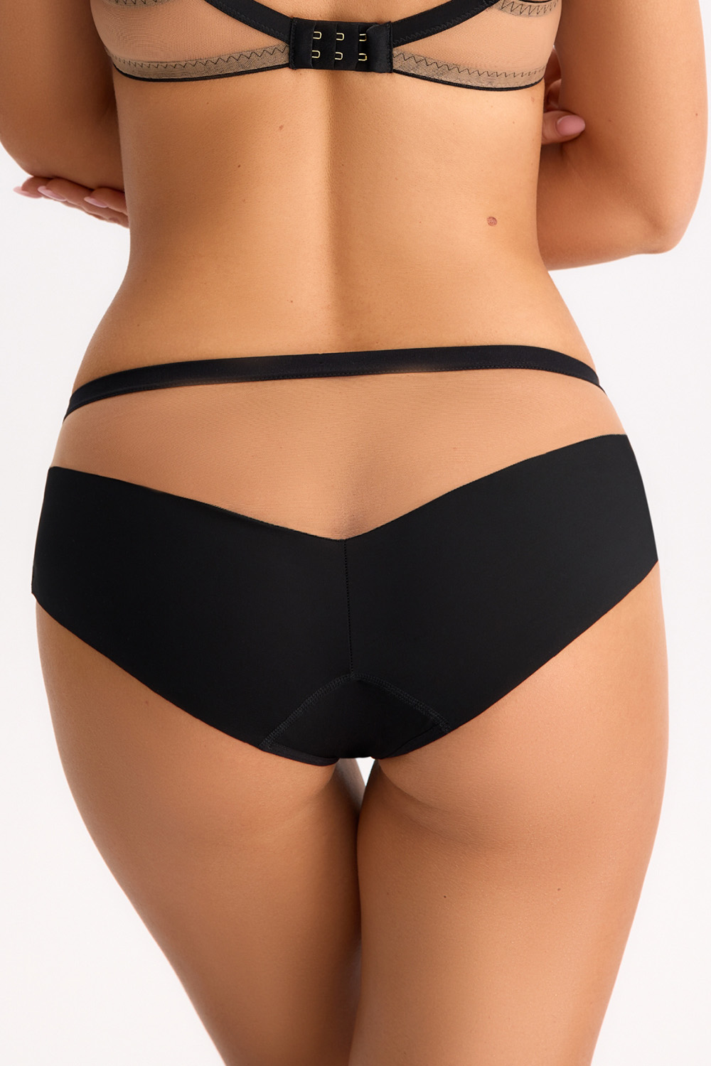 Высокие трусики-слип из линейки The Secret of Amber с прозрачными и контрастными сетчатыми вставками. Сочетание нежного тюля, с минималистичной растительной вышивкой, с плотным материалом обеспечивает не только комфорт, но и идеальную посадку на теле. Благодаря технологии плоских швов, эти трусы становятся практически невидимыми под одеждой.