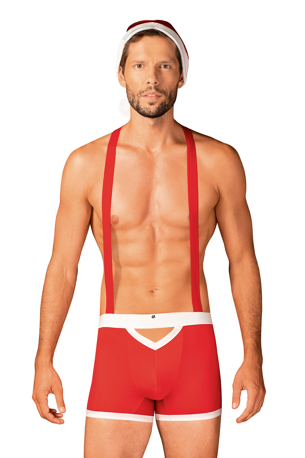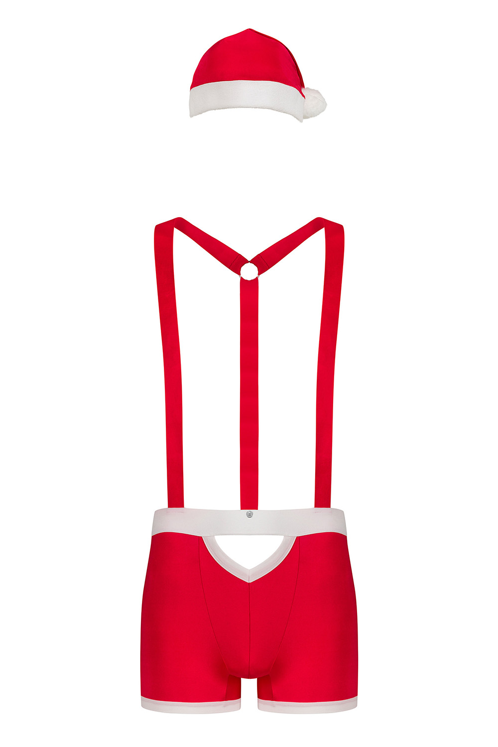 Хо-хо-хо! Стильный мужской костюм Санты — то, что нужно долгими зимними вечерами! Соблазнительные боксёрские шорты идеально подчеркнут фигуру. Добавьте кокетливую шапочку с помпоном, и вы готовы к озорному образу! В комплекте «Мистер Клаус»: шапочка и боксёрские шорты с подтяжками. Регулируемые, несъемные подтяжки. Мужские боксёрские шорты — подчеркнут достоинства любого мужчины. Изящный вырез сзади на боксёрских шортах. Классическая красная шапочка с помпоном. Удобный, облегающий материал.