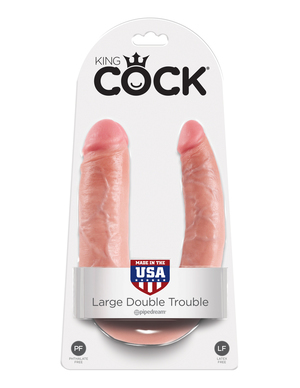 Двухголовый фаллоимитатор U образной формы U-Shaped Large Double Trouble телесный King Cock с концами разного диаметра может удовлетворить самый капризный вкус.