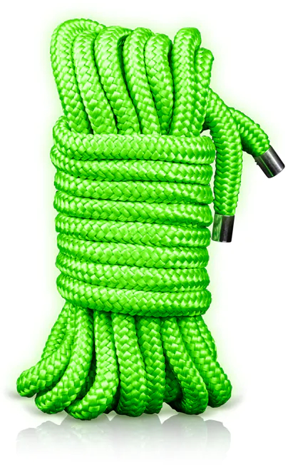 Специальная флуоресцентная веревка, длинной 10 метров, для бандажа и фиксации партнера при эротических ролевых играх и практиках БДСМ. Изделие устойчиво к механическим повреждениям и имеет термически обработанные концы.