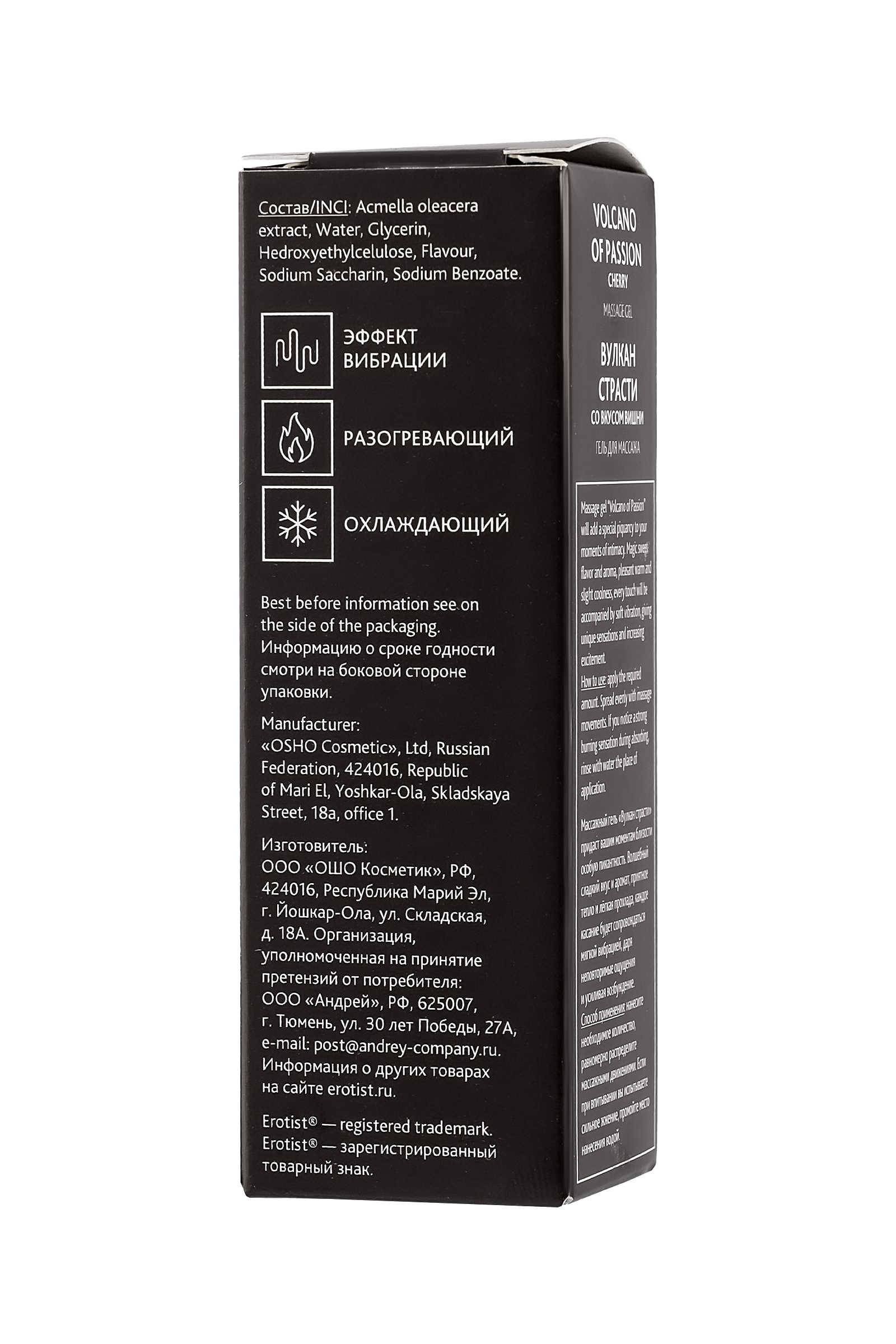 Гель Erotist с эффектом вибрации VOLCANO OF PASSION: CHERRY (со вкусом вишни), 25 мл 541823