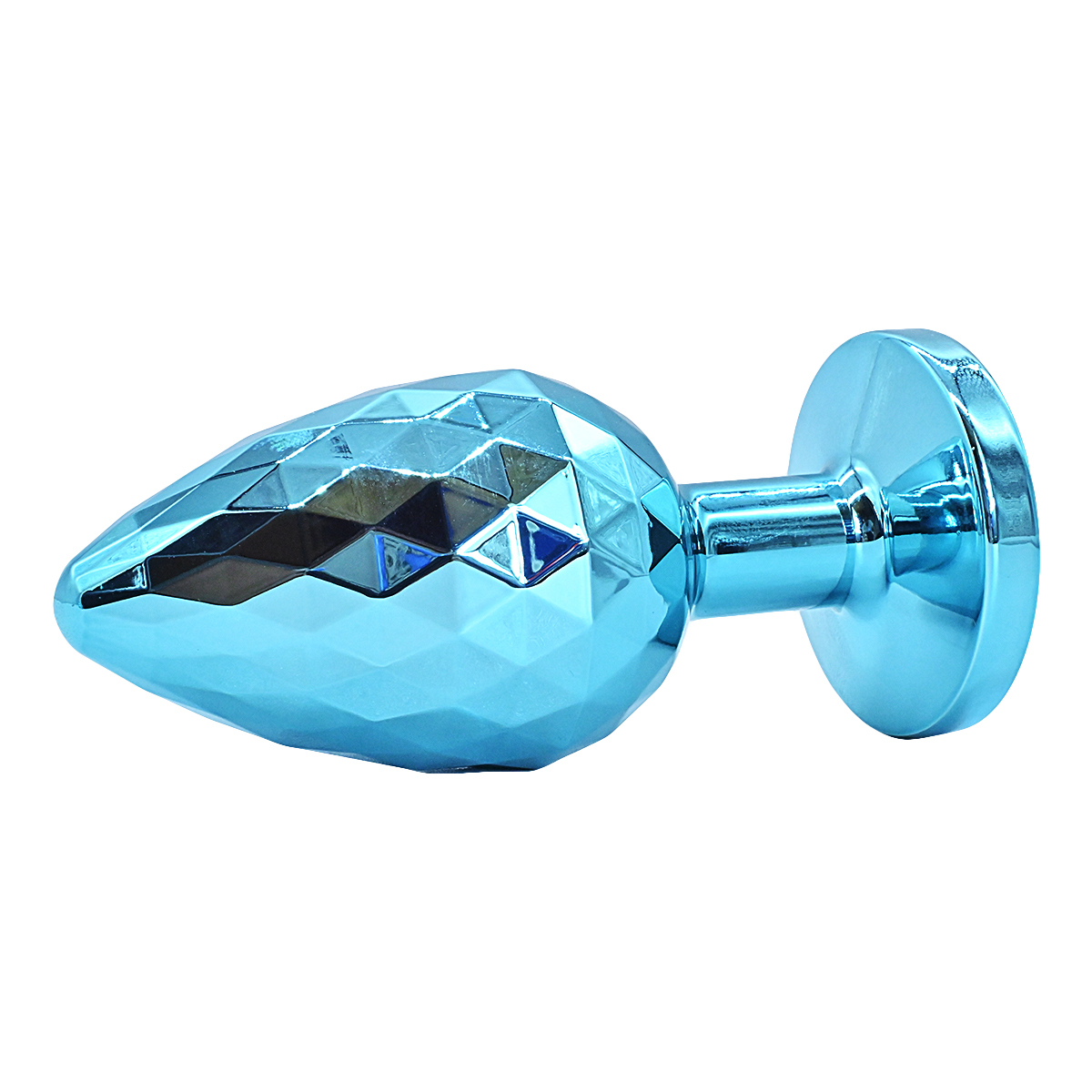 Литая анальная пробка имеет конусообразную форму. Гладкая фактура шлифованного металла создается вручную. Легкий и прочный алюминиевый сплав гарантирует долговечность и гигиеничность. Крупный граненый кристалл в основании имеет специальное светоотражающее покрытие дна для усиления блеска и более яркого и красочного вида.