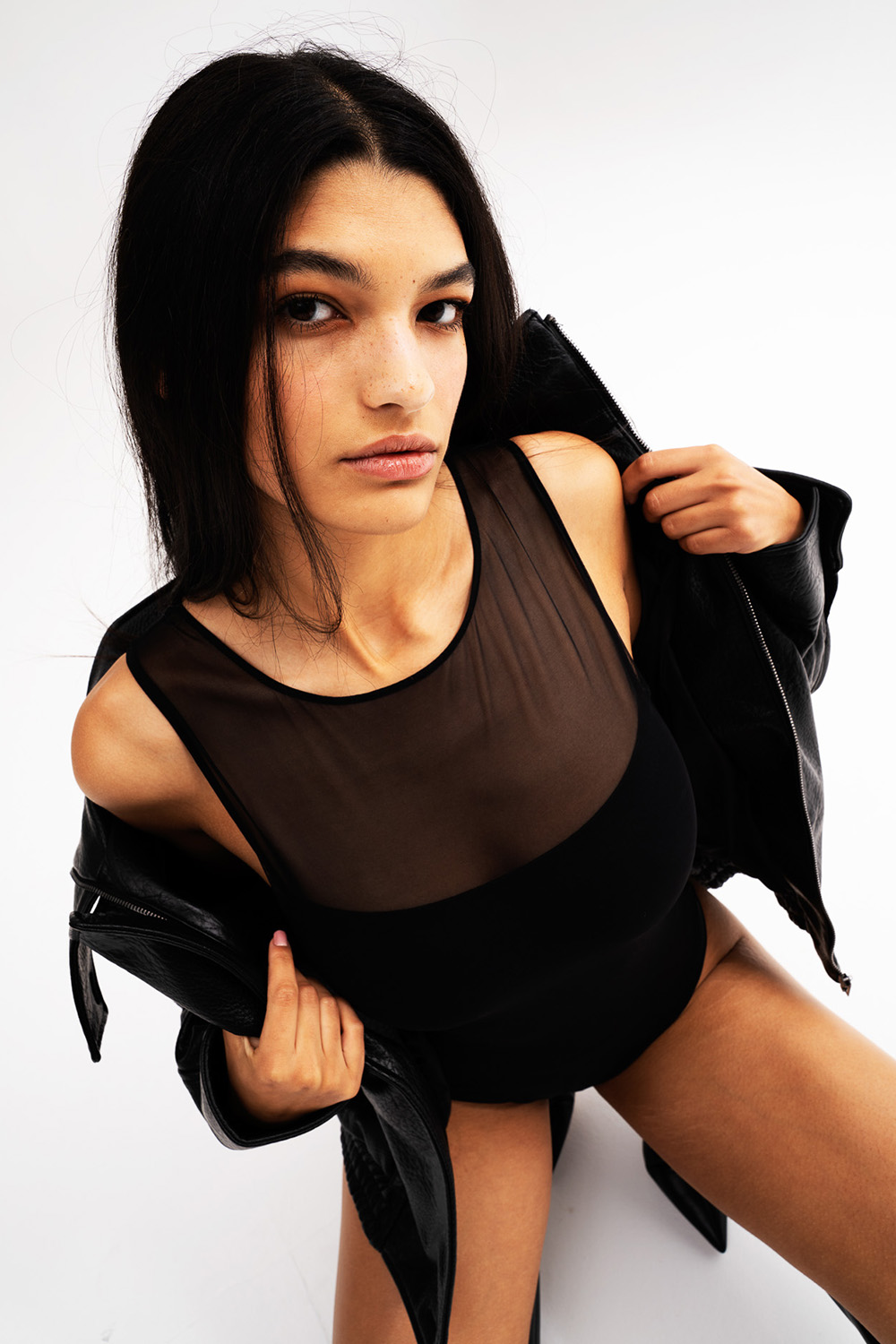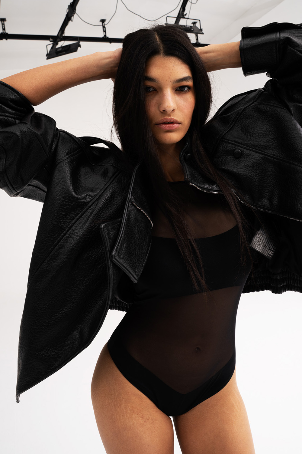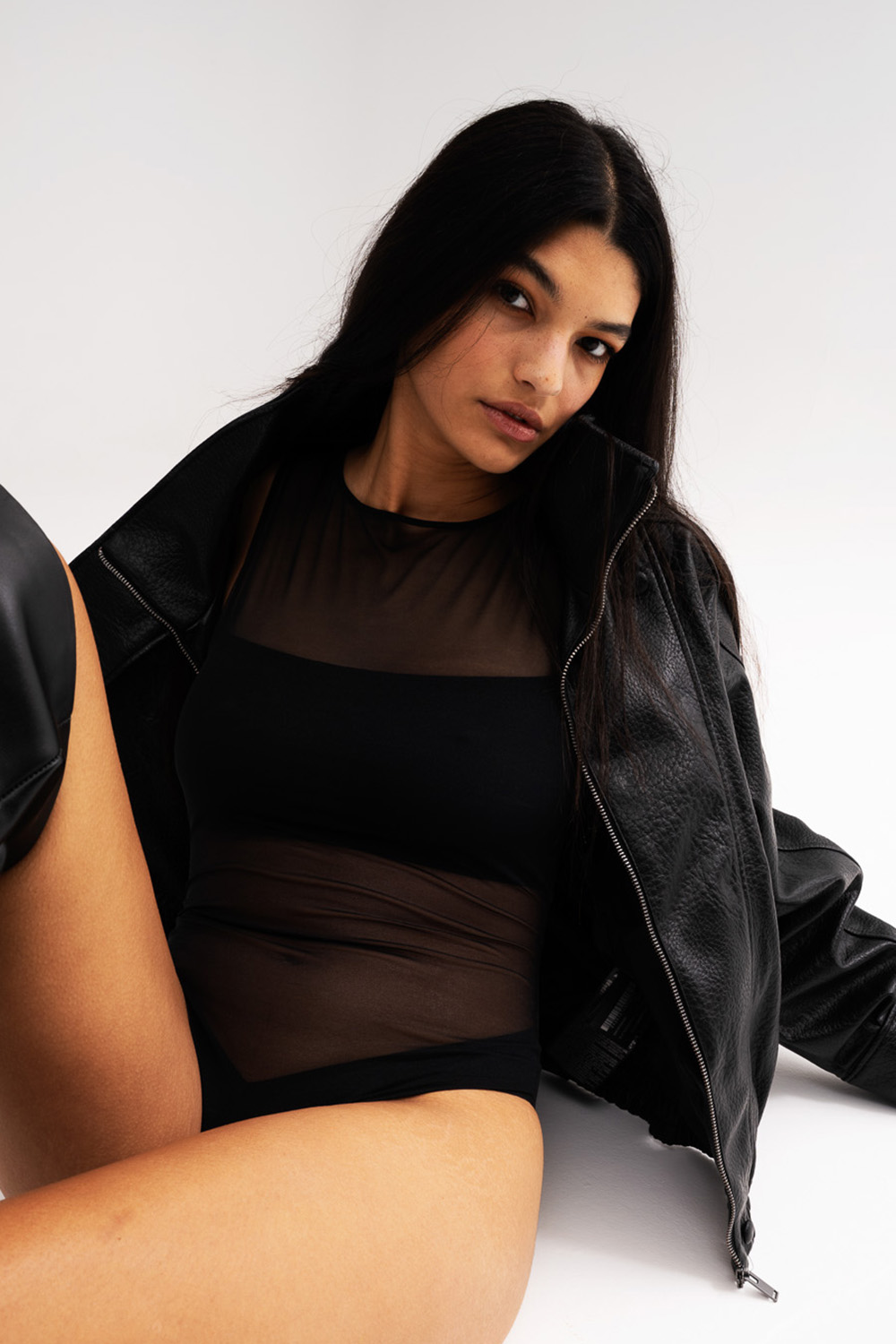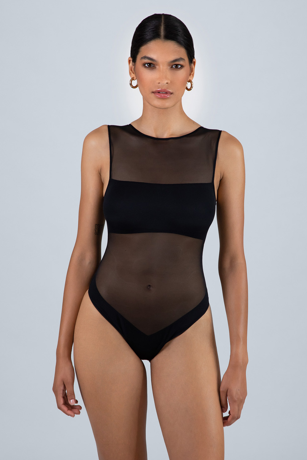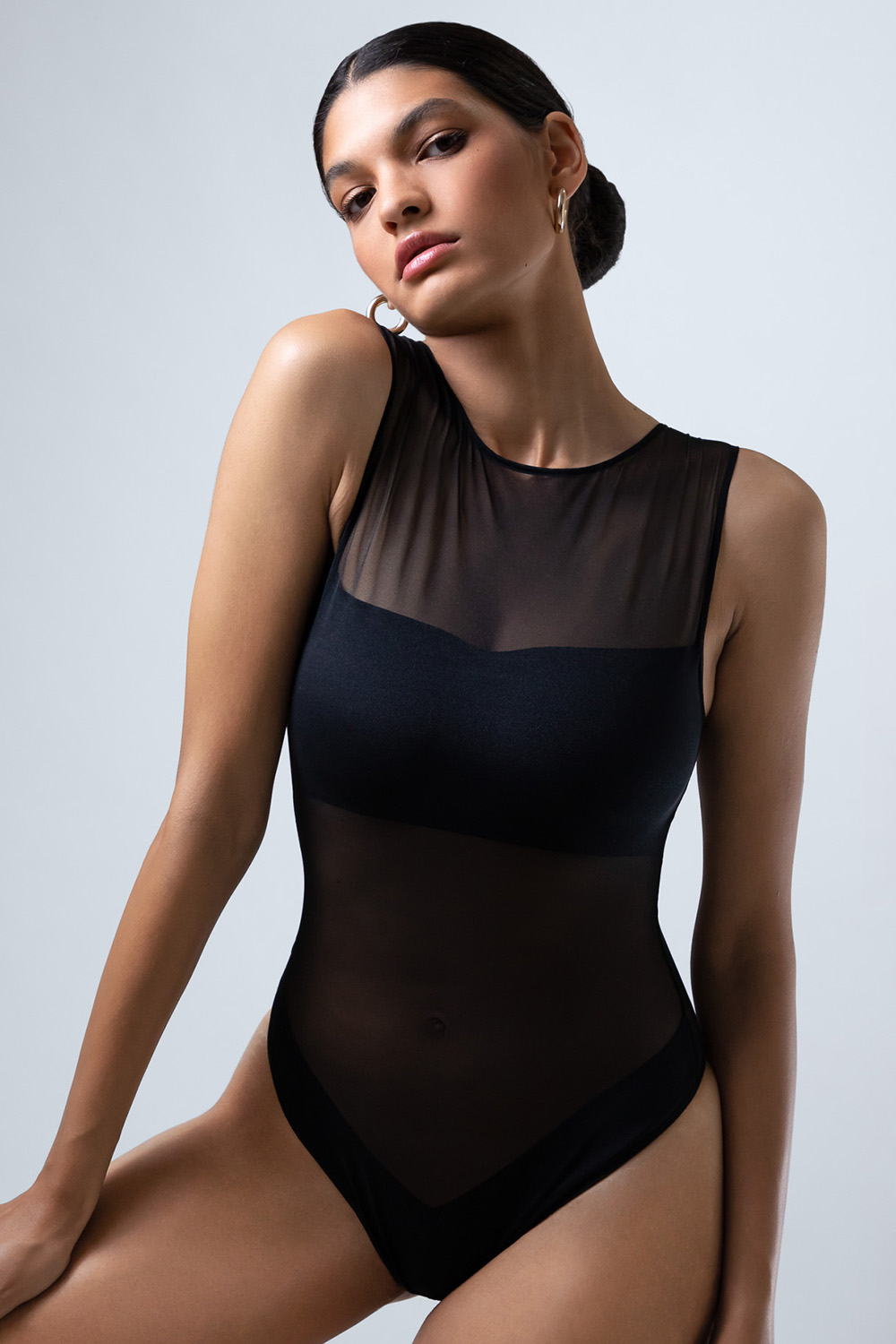 Черное боди Skim из эластичного тюля. Будет прекрасно смотреться на женской фигуре.