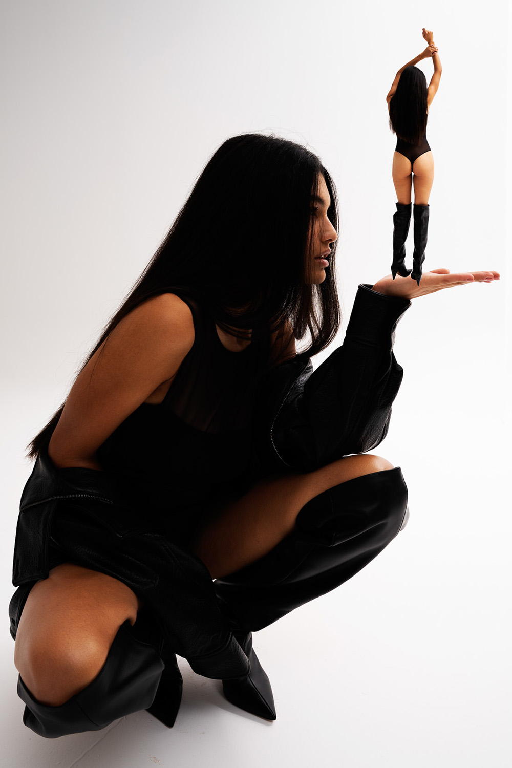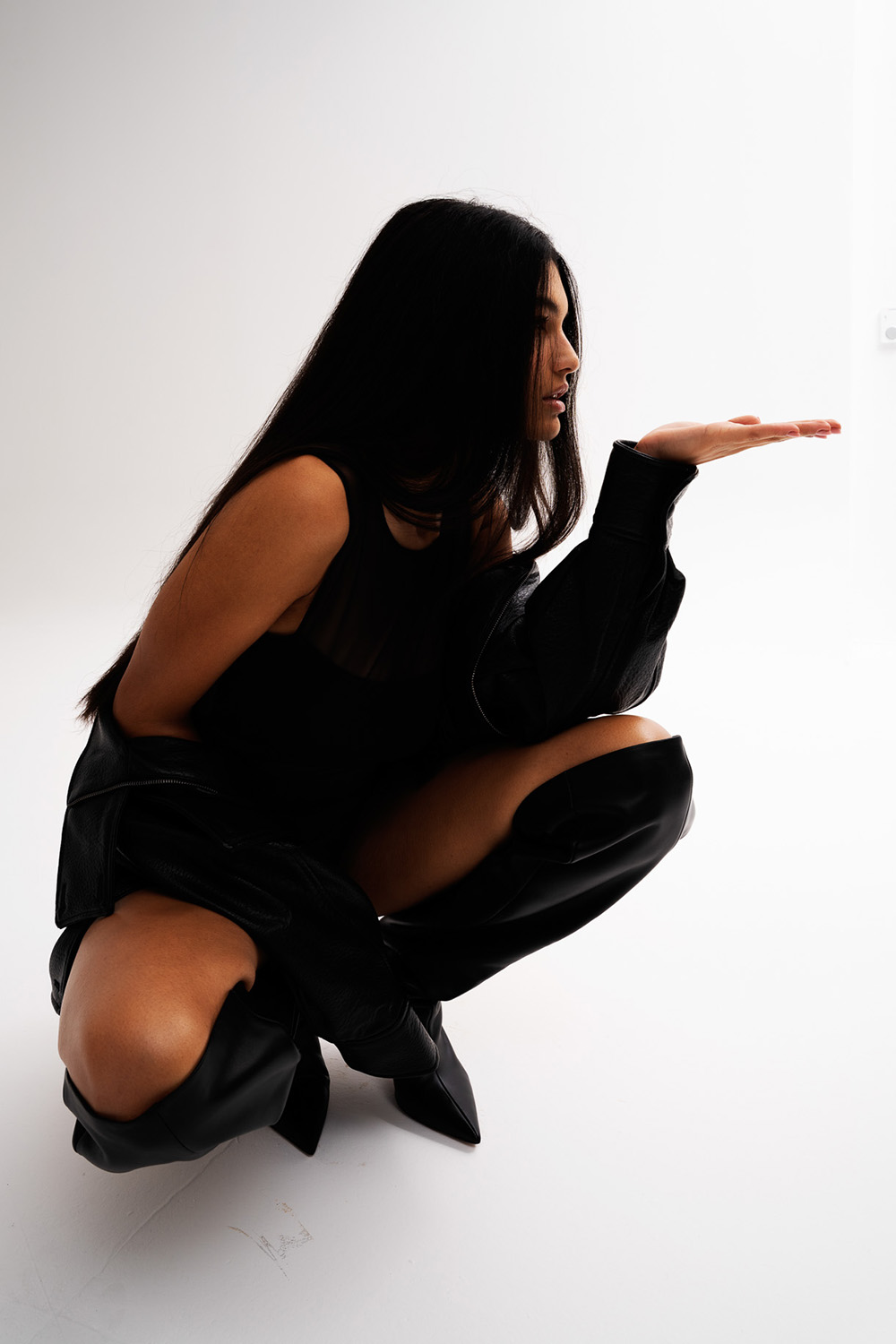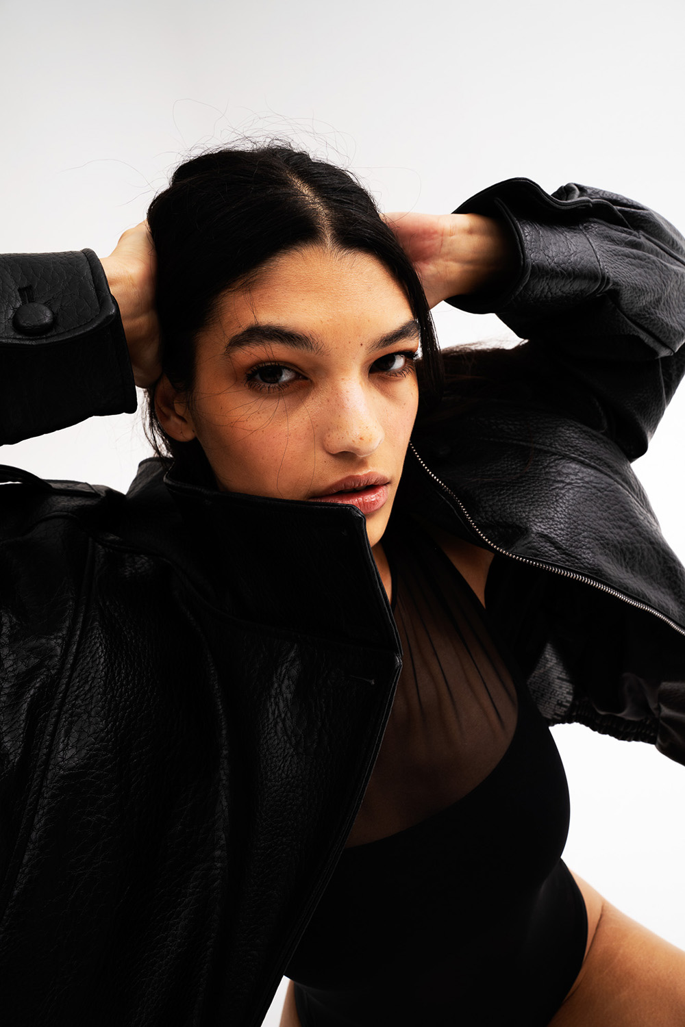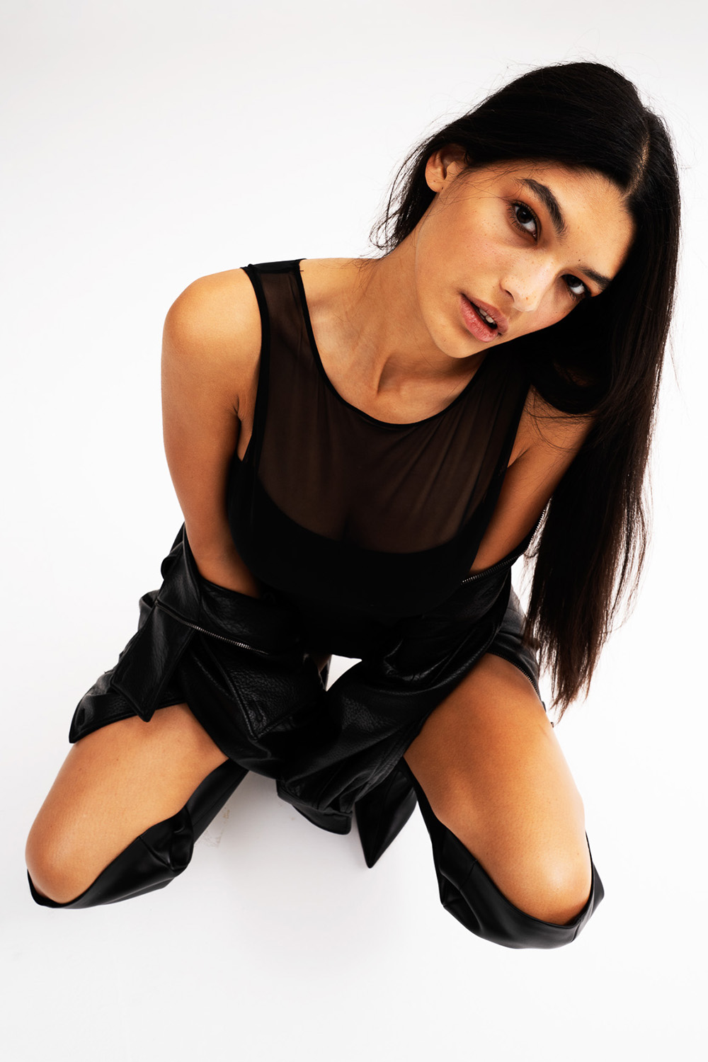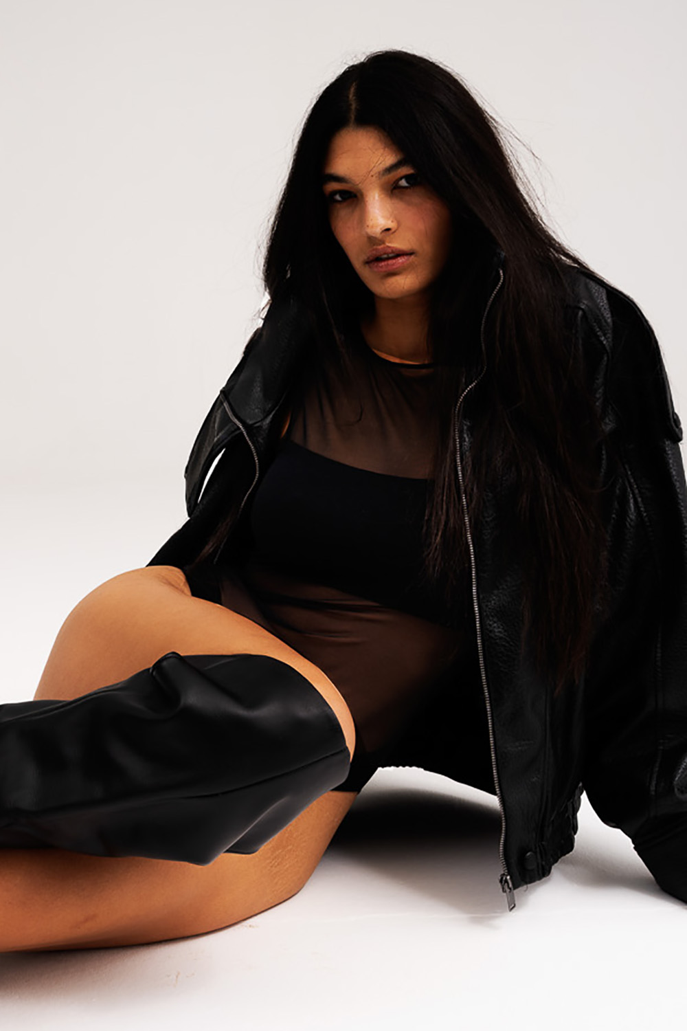 Черное боди Skim из эластичного тюля. Будет прекрасно смотреться на женской фигуре.