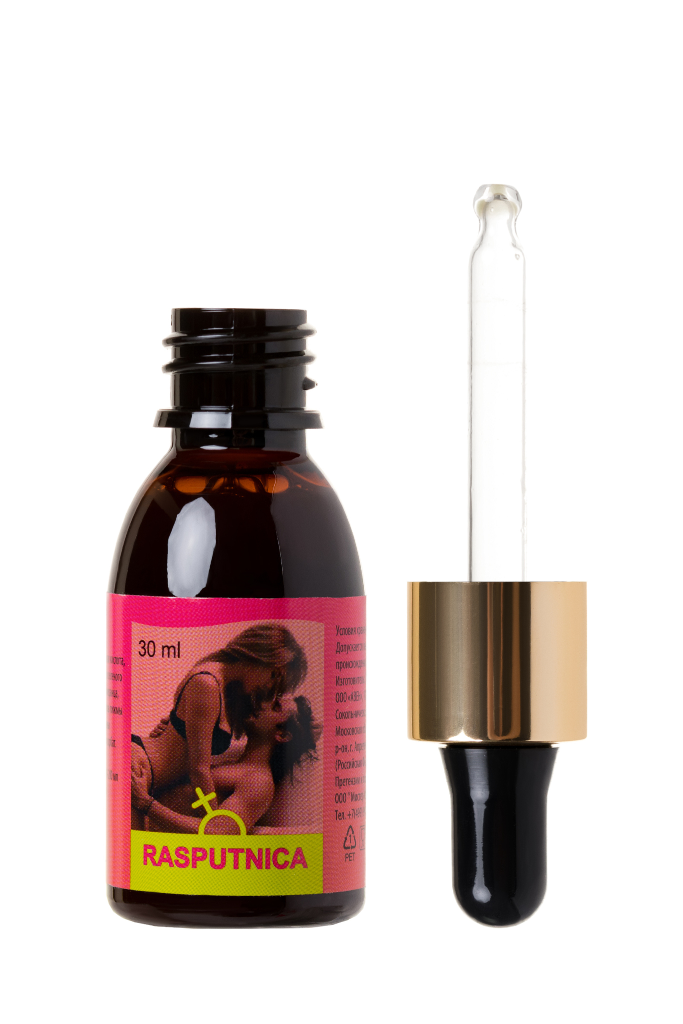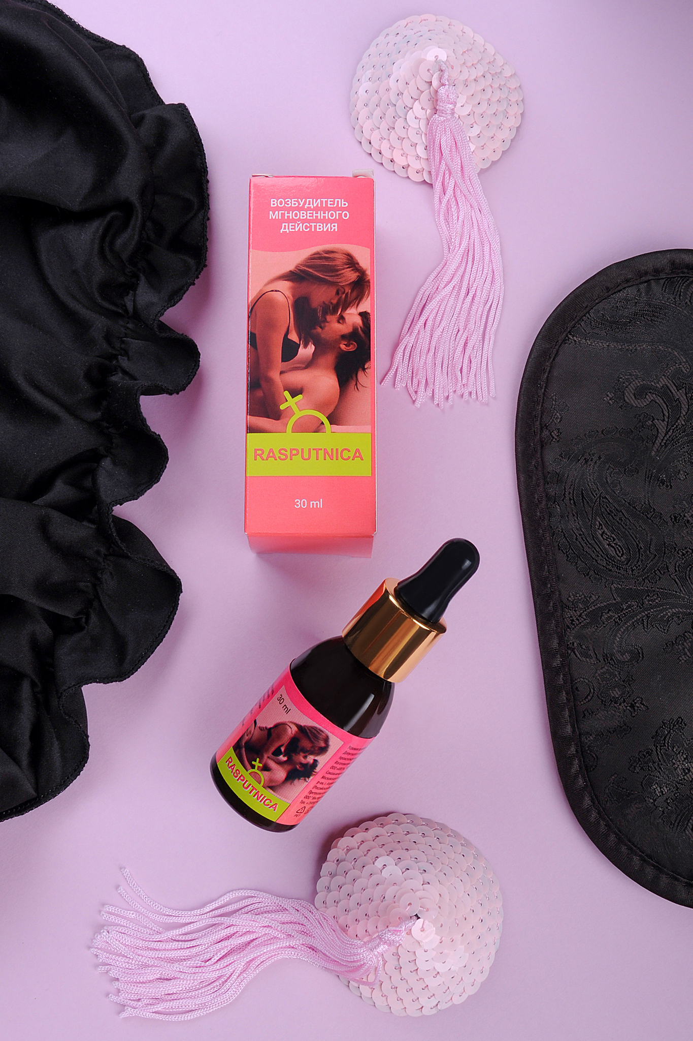 RASPUTNICA –концентрат, который воздействуют на женский организм, тонизируют и пробуждают чувственность, усиливают чувствительность во время полового акта. Натуральные компоненты препарата вызывают у женщин мощное половое возбуждение, и усиливает влечение к мужчине.Помимо этого средство позволяет получить больше удовольствия от секса - L-аргинин и корень женьшеня стимулируют микроциркуляцию в области половых органов и обеспечивают приток крови к ним, что усиливает приятные ощущения и способствует достижению оргазма.Рекомендуется взрослым женщинам для повышение либидо и дополнительного возбуждения.Рекомендации по применению: 45 капель(3 мл) концентрированного напитка развести в 100-200 мл воды или любого безалкогольного напитка. Перемешать, дождаться полного растворения содержимого(1-2 минуты) и выпить за 30 минут до полового акта. Не принимать в вечернее время.Состав: вода, регулятор кислотности лимонная кислота, L-аргинин, растительные экстракты (листьев зеленого чая, корней женьшеня, плодов гуараны, померанца, муира пуама, листьев грецкого ореха, цветков пижмы обыкновенной, листьев мяты перечной, травы лабазника вязолистного), консервант калия сорбат.Противопоказания: Индивидуальная непереносимость компонентов.Форма выпуска: флакон-капельница 30 мл