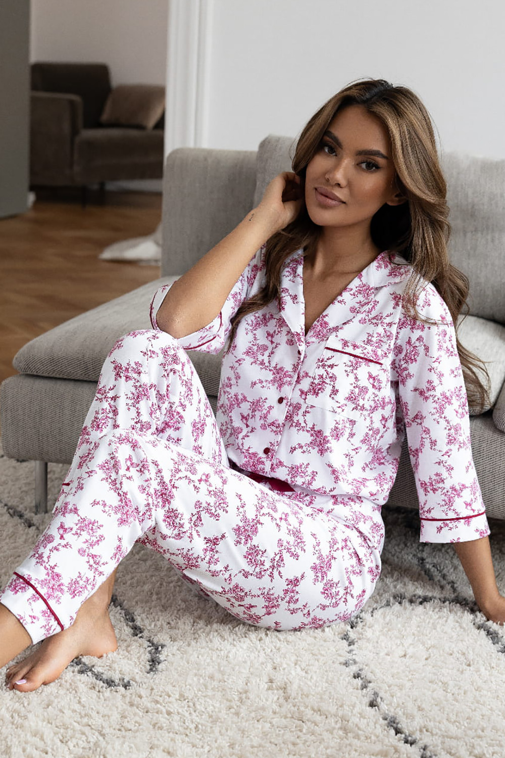 Пижама Rosaline состоит из хлопковой блузы и брюк с принтом. Брюки на широкой резинке. Идеальный вариант не только для сна, но и для домашнего отдыха.