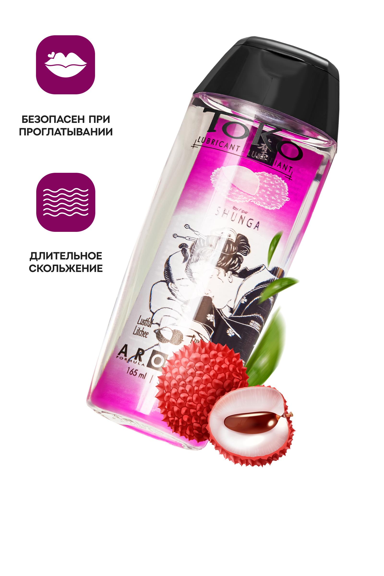 Погрузитесь в мир наслаждения с лубрикантом Toko Aroma с ароматом личи – это идеальное сочетание чувственности и комфорта. Лубрикант на водной основе с восхитительным фруктовым ароматом и вкусом, создан для того, чтобы возбуждать ваши чувства и дарить невероятно шелковистые ощущения. Благодаря отсутствию послевкусия, он идеально подходит для оральных ласк, а его сладострастный аромат личи добавит пикантности в ваши интимные моменты.Изысканный вкус: Насыщенный фруктовый вкус личи создаст атмосферу настоящего наслаждения, пробуждая ваши чувства и превращая интимные моменты в уникальные впечатления.Ультрашелковистая текстура: Лубрикант обеспечивает невероятно гладкое и длительное скольжение, не оставляя пятен на коже и ткани, а его состав быстро смывается водой.Безопасность и комфорт: Лубрикант совместим со всеми видами латекса и игрушками, не содержит сахара и подходит для веганов. Его можно слизывать, что делает Toko Aroma идеальным выбором для оральных ласк.Как использовать:Нанесите небольшое количество лубриканта на ладонь.Аккуратно распределите по интимным зонам или используйте с латексным презервативом для облегчения проникновения.Наслаждайтесь шелковистым скольжением и сладким ароматом личи.Идеально для:Орального секса: Лубрикант можно слизывать, не опасаясь неприятного послевкусия.Прелюдий и интимных игр: Добавьте чувственности и комфорта в свои близкие моменты.Использования с игрушками: Совместим со всеми латексными и силиконовыми аксессуарами.Позвольте лубриканту Toko Aroma стать вашим проводником в мир утонченного удовольствия, где каждый момент наполнен шелковистым комфортом и восхитительным вкусом.