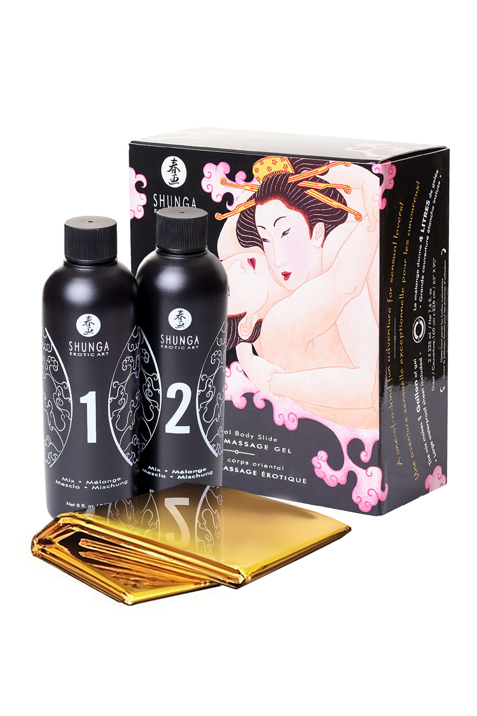 Откройте для себя непередаваемое наслаждение с оригинальным гелем для эротического массажа телом по телу “Шампанское и клубника” серии “Контактный восточный массаж” от Shunga. Этот гель превращает обычный массаж в захватывающее приключение, наполняя ваши интимные моменты страстью и экзотикой.Восточный массаж телом по телу – это чрезвычайно эротическая и занимательная игра, когда обнаженные тела, находясь почти в полной невесомости, скользят друг о друга. Нанесенный в большом количестве на обнаженные тела гель создает пьянящий и возбуждающий эффект. Текстура кожи становится возбуждающим средством сама по себе и превращает касания в ласки, которые выходят за пределы воображения самых сумасшедших желаний.Преимущества:Роскошный аромат клубники и шампанского: Погрузитесь в сладкий аромат, который пробуждает чувства и усиливает возбуждение.Премиум качество: Гель изготовлен из высококачественных ингредиентов, безопасных для кожи.Богатая текстура: Гель создает шелковистое скольжение, превращая каждое прикосновение в чувственное наслаждение.Большой объем: При смешивании вы получаете почти 4 литра геля, обеспечивая длительное удовольствие.Простота использования: Подробные инструкции на упаковке позволяют легко и быстро подготовить гель к использованию.Водонепроницаемая простыня размером 160 x 228 см в комплекте:обеспечивает комфорт и чистоту во время массажа. Как использовать:Подготовка поверхности: Сложите толстую простыню (одеяло) вдвое и разместите её на полу. Возьмите несколько полотенец и сверните их вдоль длины, чтобы сформировать цилиндрическую форму (бортики), и разместите их по краям простыни, создавая прямоугольник.Разверните золотую простыню: Аккуратно накройте поверхность водонепроницаемой простыней, разгладьте центр и выровняйте края, чтобы образовалась форма, подобная бассейну.Приготовление геля: Налейте 3,5 литра теплой воды и содержимое бутылочки №1 в любую емкость. Добавьте бутылочку №2 и хорошо перемешайте. Вы получите 4 литра массажного геля.Начало массажа: Аккуратно вылейте теплый массажный гель на тело вашего партнера. Начните массаж телом по телу, позволяя своему воображению быть вашим гидом.Все инструкции иллюстрированы на передней панели упаковки.Идеально подходит для:Романтических вечеров: Превратите обычный вечер в незабываемое эротическое приключение.Новобрачных: Добавьте страсти в медовый месяц с этим уникальным продуктом.Любителей экзотики: Подарите себе и партнеру новые ощущения и воспоминания.Подарков на особые случаи: Отличный выбор для годовщин, Дня Святого Валентина и других романтических праздников.Спа-салонов: Прекрасное дополнение к премиальным услугам, предлагающим клиентам уникальный и незабываемый опыт.Наслаждайтесь чувственным массажем и пробудите свои самые смелые фантазии с массажным гелем от Shunga. Позвольте себе и вашему партнеру испытать истинное удовольствие от каждого прикосновения.Аромат: шампанское и клубника Назначение: Возбуждающие, для массажа, увлажняющие