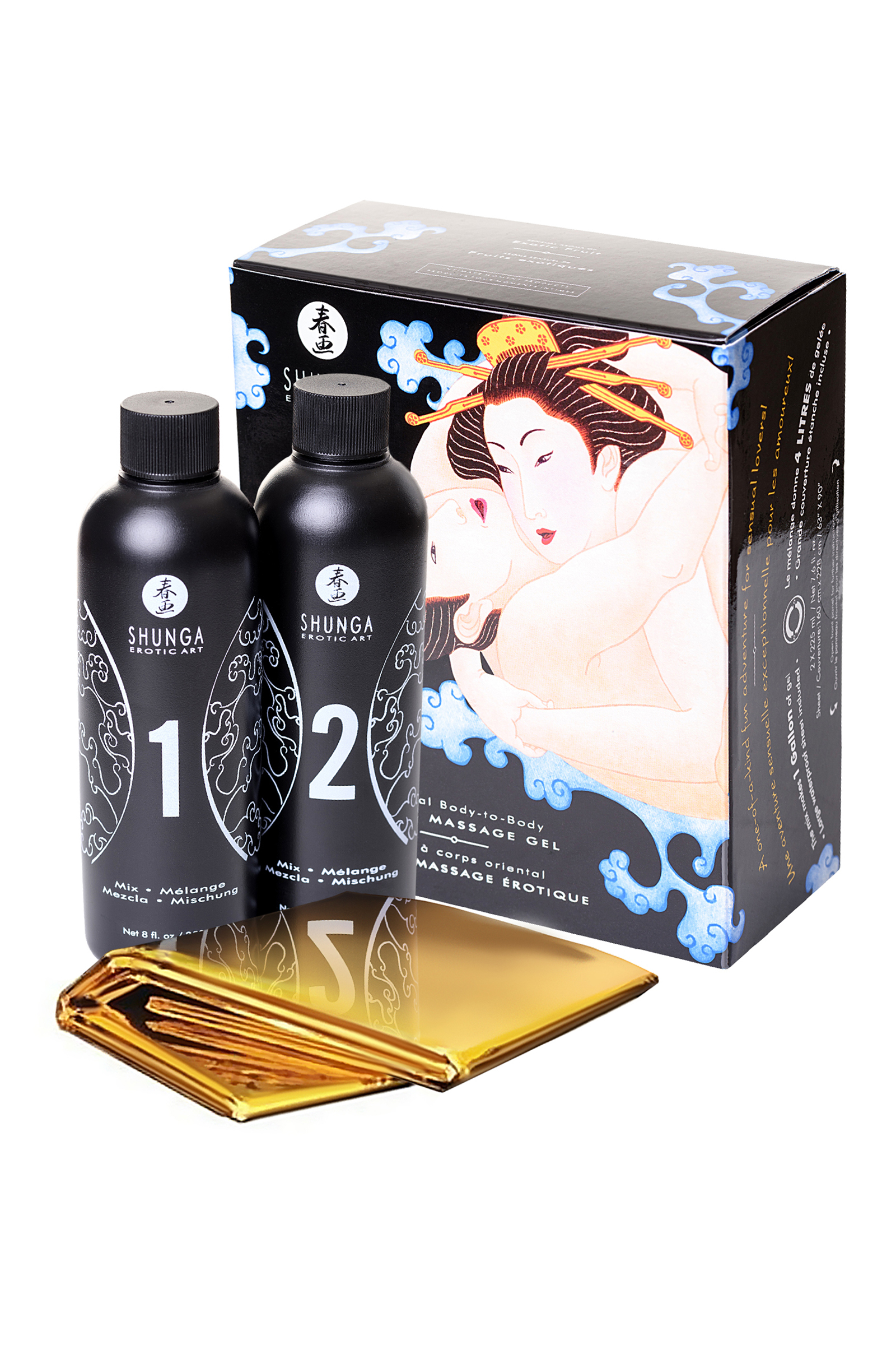 Откройте для себя непередаваемое наслаждение с оригинальным гелем для эротического массажа телом по телу “Экзотические фрукты” серии “Контактный восточный массаж” от Shunga. Этот гель превращает обычный массаж в захватывающее приключение, наполняя ваши интимные моменты страстью и экзотикой.Восточный массаж телом по телу – это чрезвычайно эротическая и занимательная игра, когда обнаженные тела, находясь почти в полной невесомости, скользят друг о друга. Нанесенный в большом количестве на обнаженные тела гель создает пьянящий и возбуждающий эффект. Текстура кожи становится возбуждающим средством сама по себе и превращает касания в ласки, которые выходят за пределы воображения самых сумасшедших желаний.Преимущества:Роскошный аромат экзотических фруктов: Погрузитесь в сладкий аромат, который пробуждает чувства и усиливает возбуждение.Премиум качество: Гель изготовлен из высококачественных ингредиентов, безопасных для кожи.Богатая текстура: Гель создает шелковистое скольжение, превращая каждое прикосновение в чувственное наслаждение.Большой объем: При смешивании вы получаете почти 4 литра геля, обеспечивая длительное удовольствие.Простота использования: Подробные инструкции на упаковке позволяют легко и быстро подготовить гель к использованию.Водонепроницаемая простыня размером 160 x 228 см в комплекте:обеспечивает комфорт и чистоту во время массажа. Как использовать:Подготовка поверхности: Сложите толстую простыню (одеяло) вдвое и разместите её на полу. Возьмите несколько полотенец и сверните их вдоль длины, чтобы сформировать цилиндрическую форму (бортики), и разместите их по краям простыни, создавая прямоугольник.Разверните золотую простыню: Аккуратно накройте поверхность водонепроницаемой простыней, разгладьте центр и выровняйте края, чтобы образовалась форма, подобная бассейну.Приготовление геля: Налейте 3,5 литра теплой воды и содержимое бутылочки №1 в любую емкость. Добавьте бутылочку №2 и хорошо перемешайте. Вы получите 4 литра массажного геля.Начало массажа: Аккуратно вылейте теплый массажный гель на тело вашего партнера. Начните массаж телом по телу, позволяя своему воображению быть вашим гидом.Все инструкции иллюстрированы на передней панели упаковки.Идеально подходит для:Романтических вечеров: Превратите обычный вечер в незабываемое эротическое приключение.Новобрачных: Добавьте страсти в медовый месяц с этим уникальным продуктом.Любителей экзотики: Подарите себе и партнеру новые ощущения и воспоминания.Подарков на особые случаи: Отличный выбор для годовщин, Дня Святого Валентина и других романтических праздников.Спа-салонов: Прекрасное дополнение к премиальным услугам, предлагающим клиентам уникальный и незабываемый опыт.Наслаждайтесь чувственным массажем и пробудите свои самые смелые фантазии с массажным гелем от Shunga. Позвольте себе и вашему партнеру испытать истинное удовольствие от каждого прикосновения.Аромат: экзотические фрукты Назначение: Возбуждающие, для массажа, увлажняющие