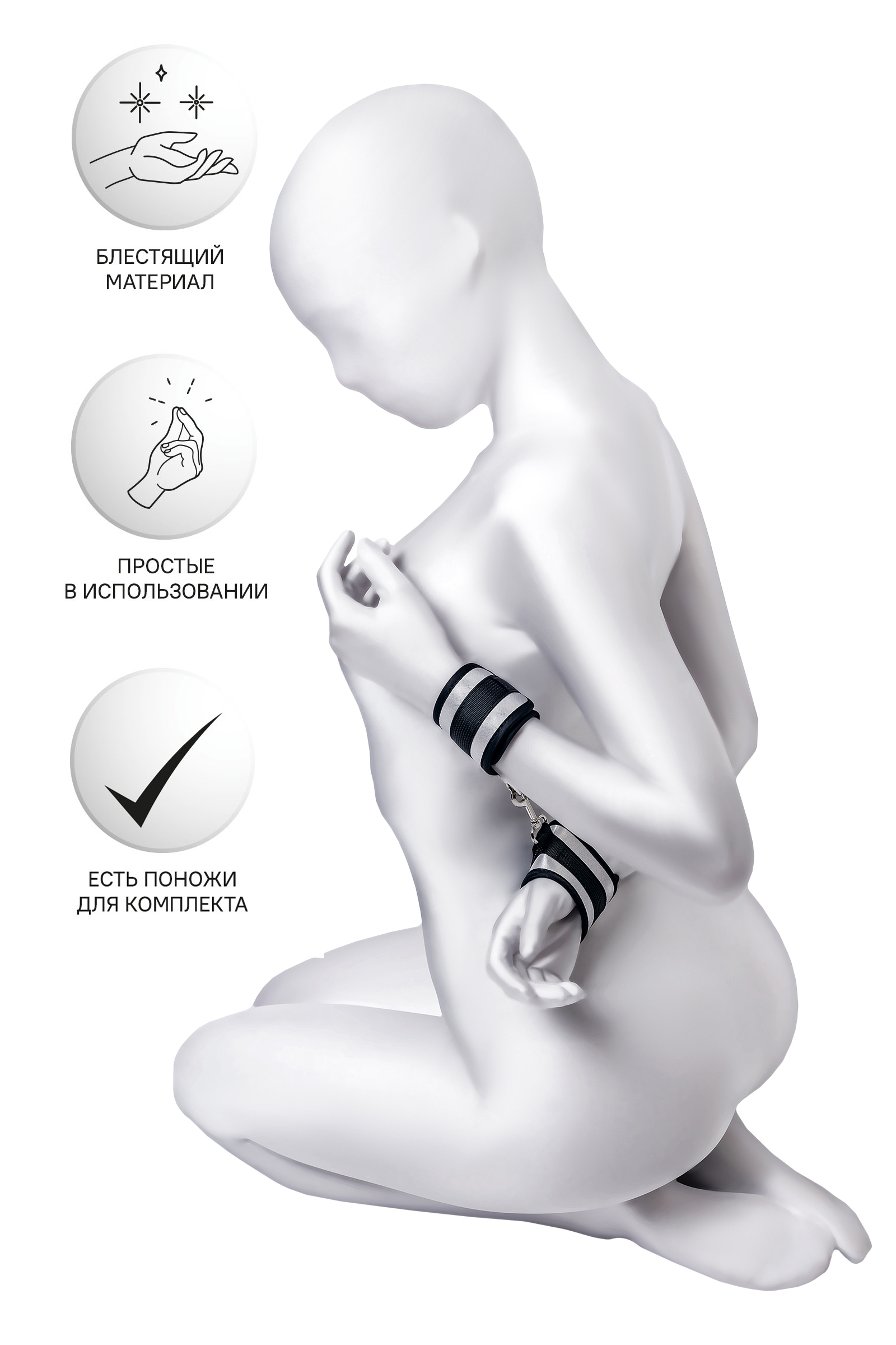 Наручники — классический предмет для игры в подчинение, обязательный для начинающих и опытных поклонников БДСМ.Блестящий во всех смыслах аксессуар для ограничения свободы: сатиновый материал поблескивает, когда на него падает свет. Необычное сочетание серебристого и черного, совсем нехарактерное для классического исполнения аксессуаров в стиле БДСМ, придает изюминку и новизну. Подчиненный с таким аксессуаром выглядит неотразимым.Застежка велкро позволяет зафиксировать руки любого размера. Между собой наручники скрепляются карабинами, практически не оставляя свободы действий. Никакого послабления, только полное подчинение своему Доминанту, где бы ни были зафиксированы руки: впереди или за спиной. Используйте дополнительно цепочку для расширенных возможностей фиксации положения рук.Начните игру в подчинение с этим аксессуаром, и вы поймете, как развивать свою чувственность с помощью ограничения свободы одного из партнеров. Дополните комплект аксессуарами — ошейником, кляпом, оковами и продемонстрируйте что значит грубое обращение и полный контроль над свободой.Материал: полиэстер, полипропиленЦвет: серебристо-черныйДлина: 23,5 смШирина: 5,5 смДлина сцепки: 8 см