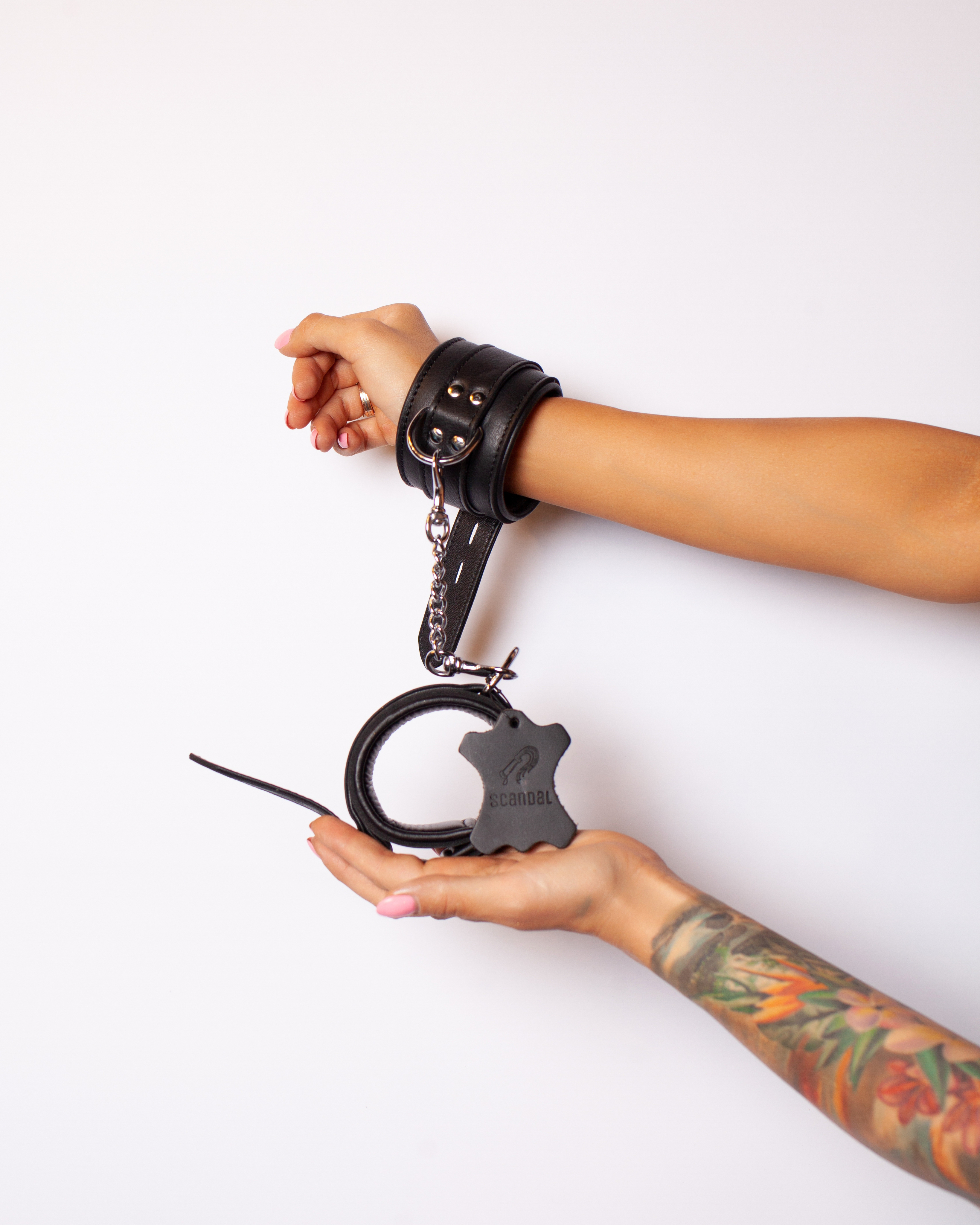 Изысканные наручники из натуральной кожи премиум качество с соединительной цепочкой из нержавеющей стали. Цепочка крепится к наручникам с помощью карабинов. Размер наручников легко регулируется с помощью застежки.