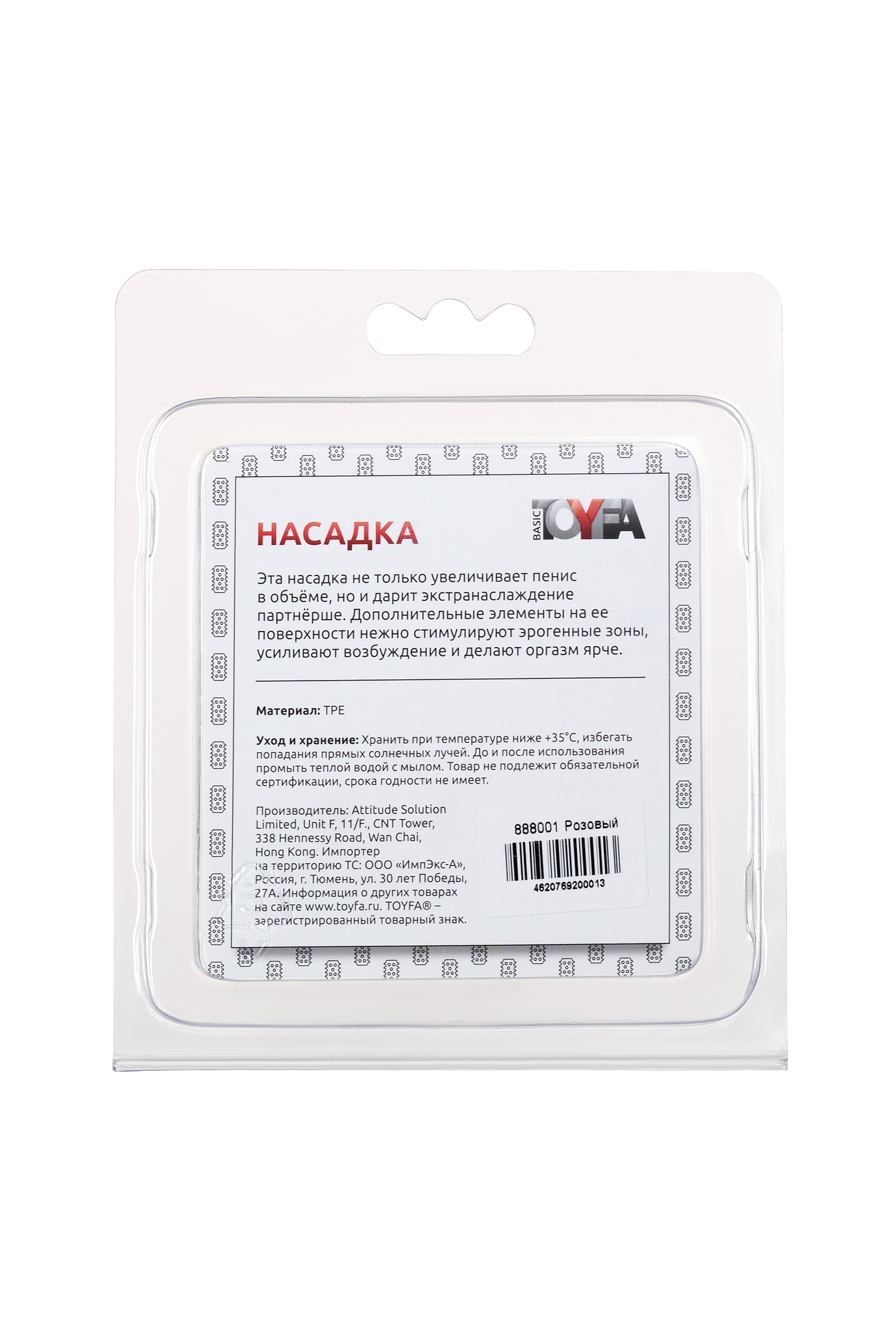 Насадка на пенис рельефная TOYFA Basic, TPE, розовый, 5 см