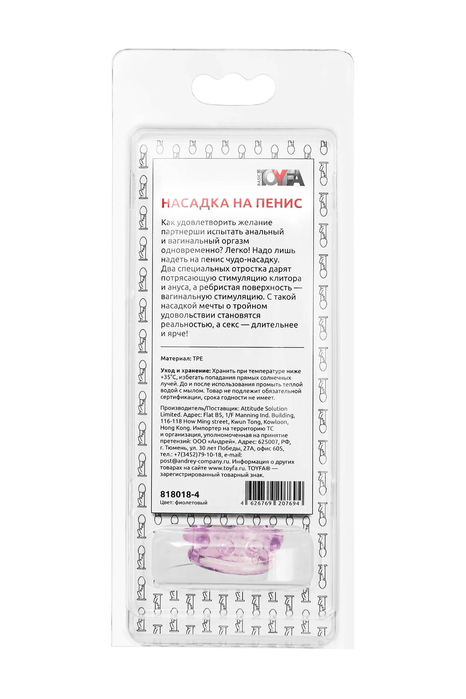 Насадка на пенис с дополнительной стимуляцией TOYFA Basic, TPE, фиолетовый, 13 см 818017-4