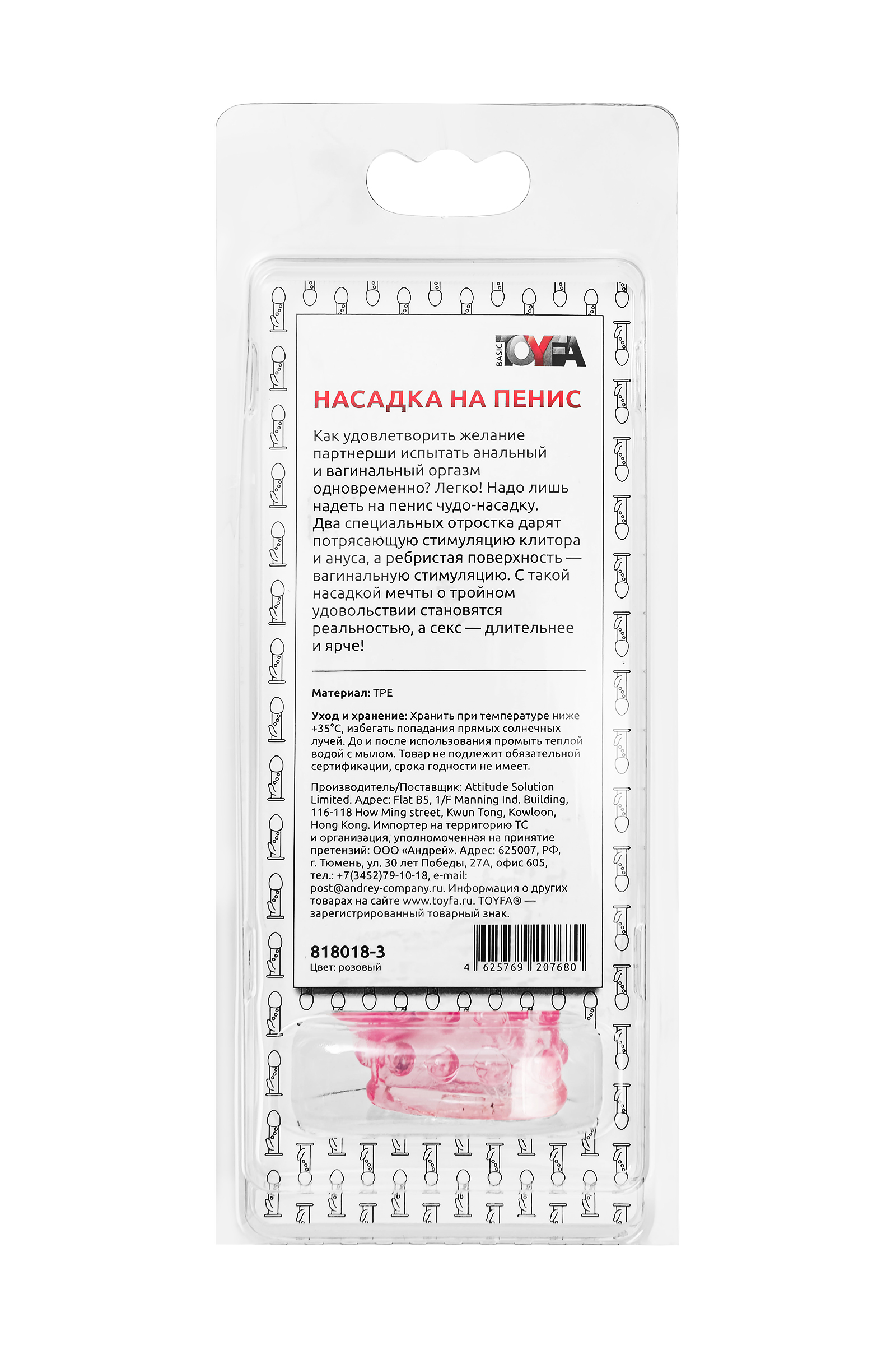 Насадка на пенис с дополнительной стимуляцией TOYFA Basic, TPE, розовый, 13 см 818018-3