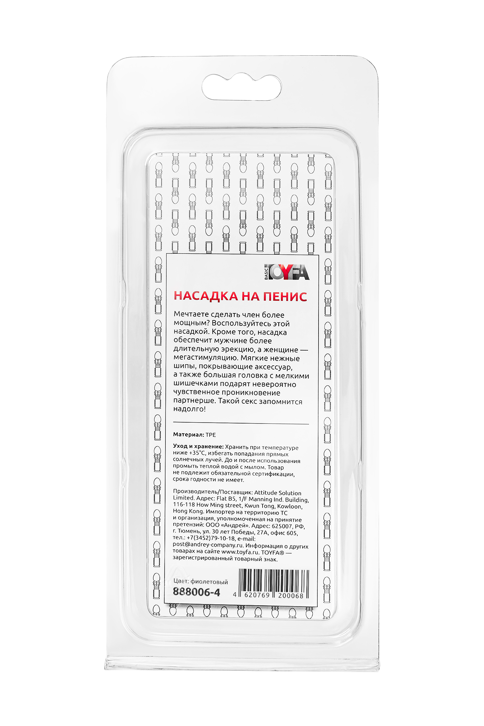 Насадка на пенис с ворсинками TOYFA Basic, TPE, фиолетовый, 13,5 см