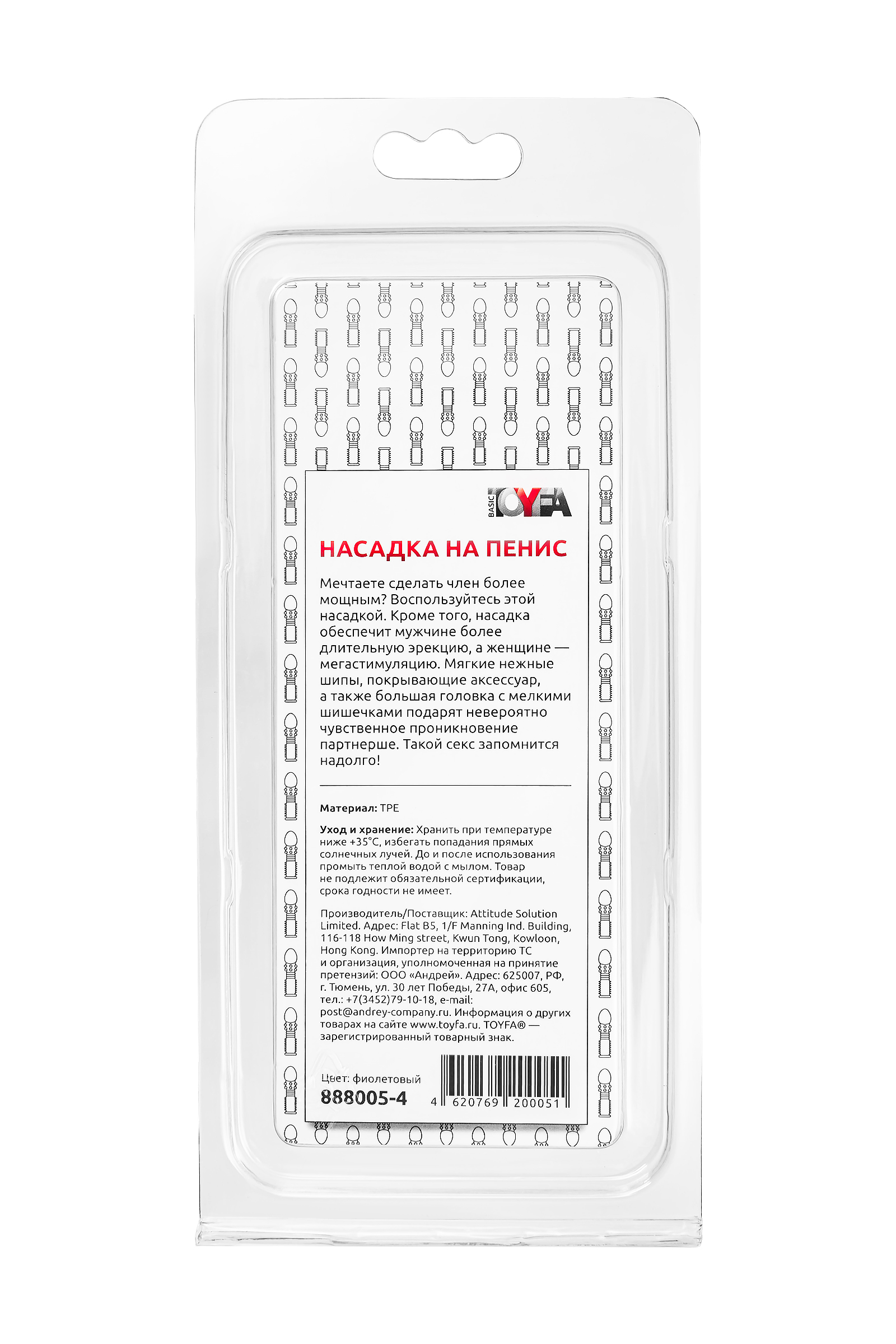 Насадка, выполненная из материала TPE, длина 13,5 см, диаметр 2,5 см.