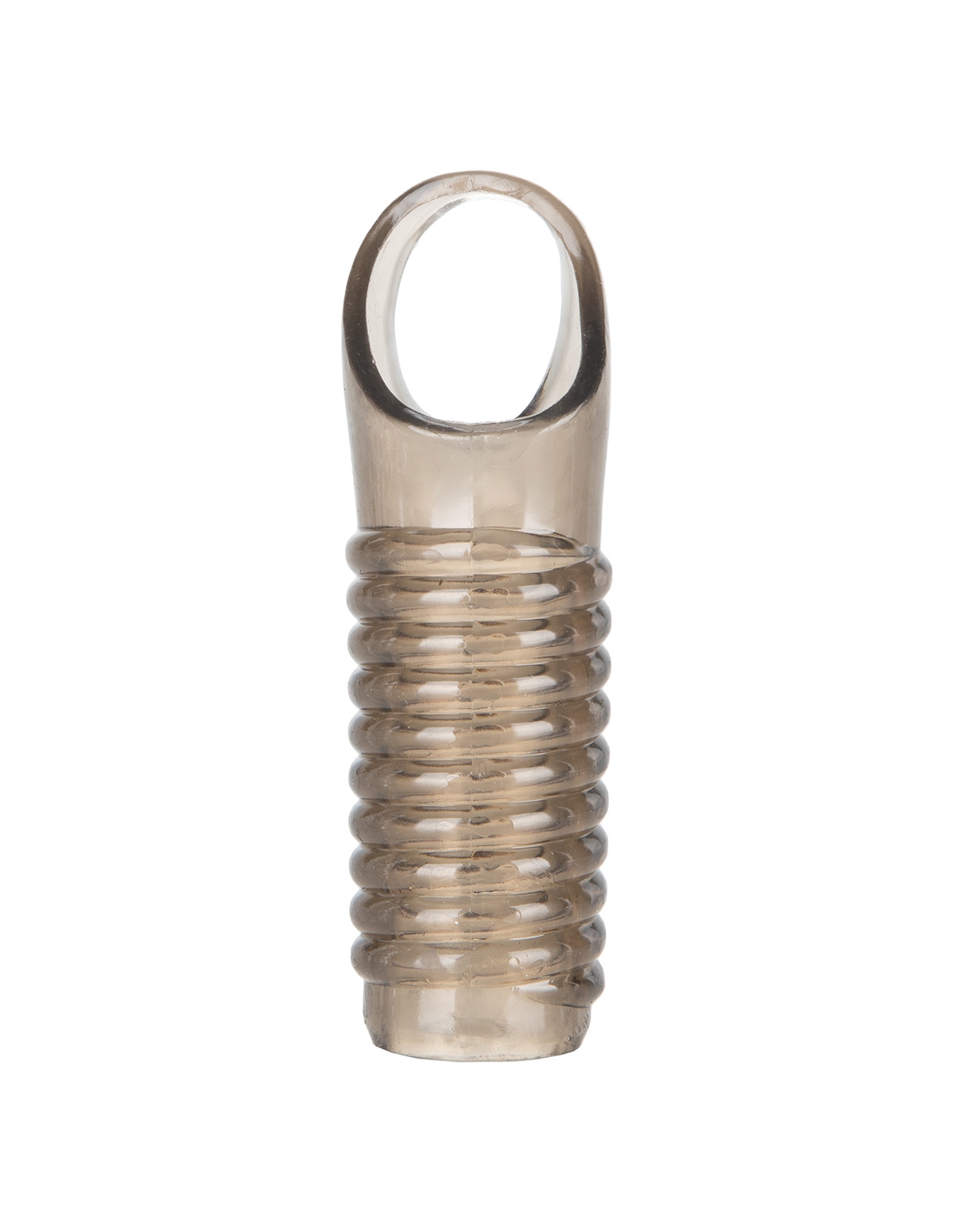 Soft, comfortable enhancer adds girth and support. Textured ridges for added pleasure. Built-in scrotum support strap for secure placement.