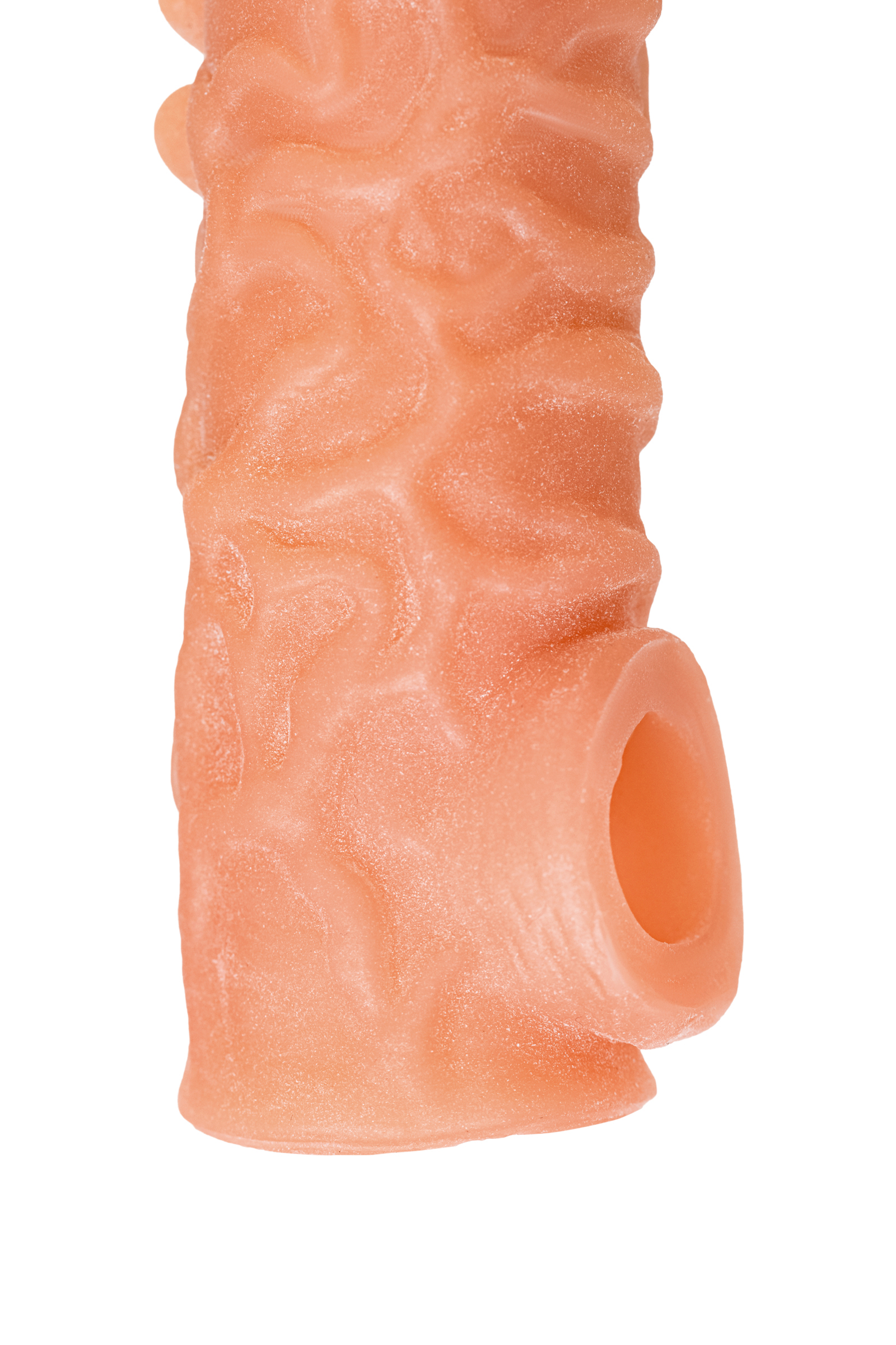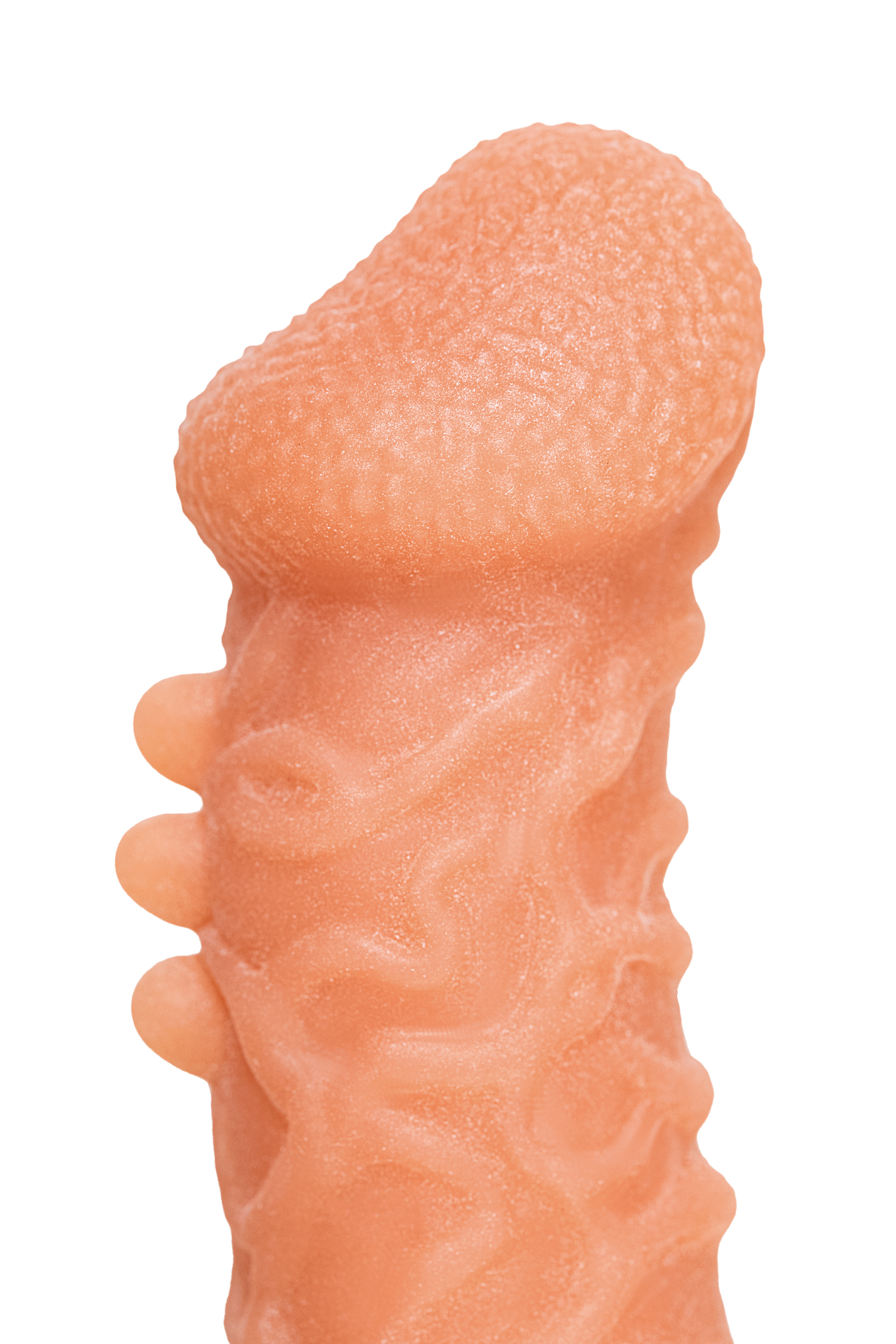 Увеличивающая насадка с изгибом и фантазийным рельефом в виде вен и пупырышек от KOKOS открывает новые возможности для взаимного удовольствия и воплощает фантазии о внушительном размере пениса.Увеличенный размер и объем полового члена добавляет мужчине уверенности в своих сексуальных возможностях.Дополнительная стимуляция партнерши для яркого и насыщенного оргазма.Увеличение продолжительности полового акта у мужчины - задержка эякуляции, и наращивание темпа приближения оргазма у женщины.Реалистичная насадка на пенис - необходимый элемент для вашей сексуальной игры, если вы хотите максимально удовлетворить свою партнершу и сделать ваш секс незабываемым.Насадка придает дополнительный объем и длину половому члену. Мощная головка имеет рельеф из мелких пузырьков и крупный выступ. Изогнутая форма и три выступающих бугорка очень хорошо стимулируют зону G и вход во влагалище. Контрастный переход от головки к стволу и 3 выпуклости на передней части насадки, благодаря изогнутой форме, увеличивают силу стимуляции самых эрогенных зон влагалища.Особенный рельеф в виде многочисленных вен по всему стволу насадки деликатно ласкает чувствительные зоны. Дополнительный объем дарит то самое чувство наполненности, увеличивая поток возбуждения. Мужчина тоже будет ощущать стимуляцию за счет давления стенок влагалища на пенис.Для идеальной посадки по длине пениса используйте губчатую вставку, которая находится внутри насадки, подрезав ее до нужной длины. Не забудьте надеть презерватив в этом случае.В основании есть отверстие для мошонки, с помощью которого вы можете надежно зафиксировать насадку на пенисе и не ограничивать себя в активных движениях.Супер эластичный и нежный материал быстро принимает температуру тела, отлично тянется, сохраняя при этом прочность. Долговечность использования при соблюдении правил хранения и ухода за насадкой. Используйте с насадкой лубрикант только на водной основе. Насадка сделана из высококачественного безвредного для человеческого организма материала, который прошел необходимые тестирования и сертификацию.Длина: 15,6 смДиаметр: 4,2 смРазмер: MЦвет: телесныйМатериал: TPEСтрана бренда KOKOS: Корея.
