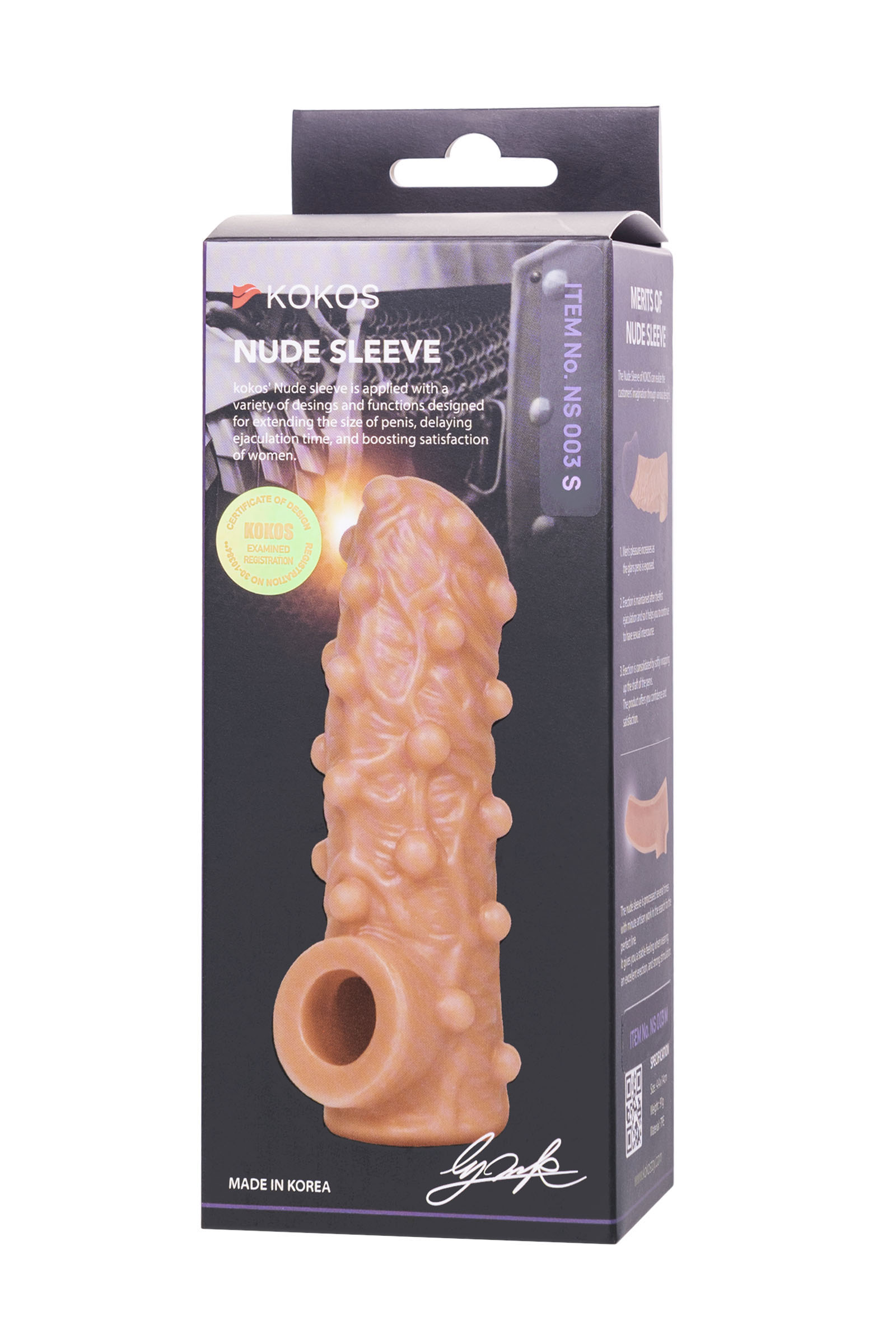 Насадка реалистичная KOKOS NUDE SLEEVE с дополнительной стимуляцией, TPE, телесная, 10 см