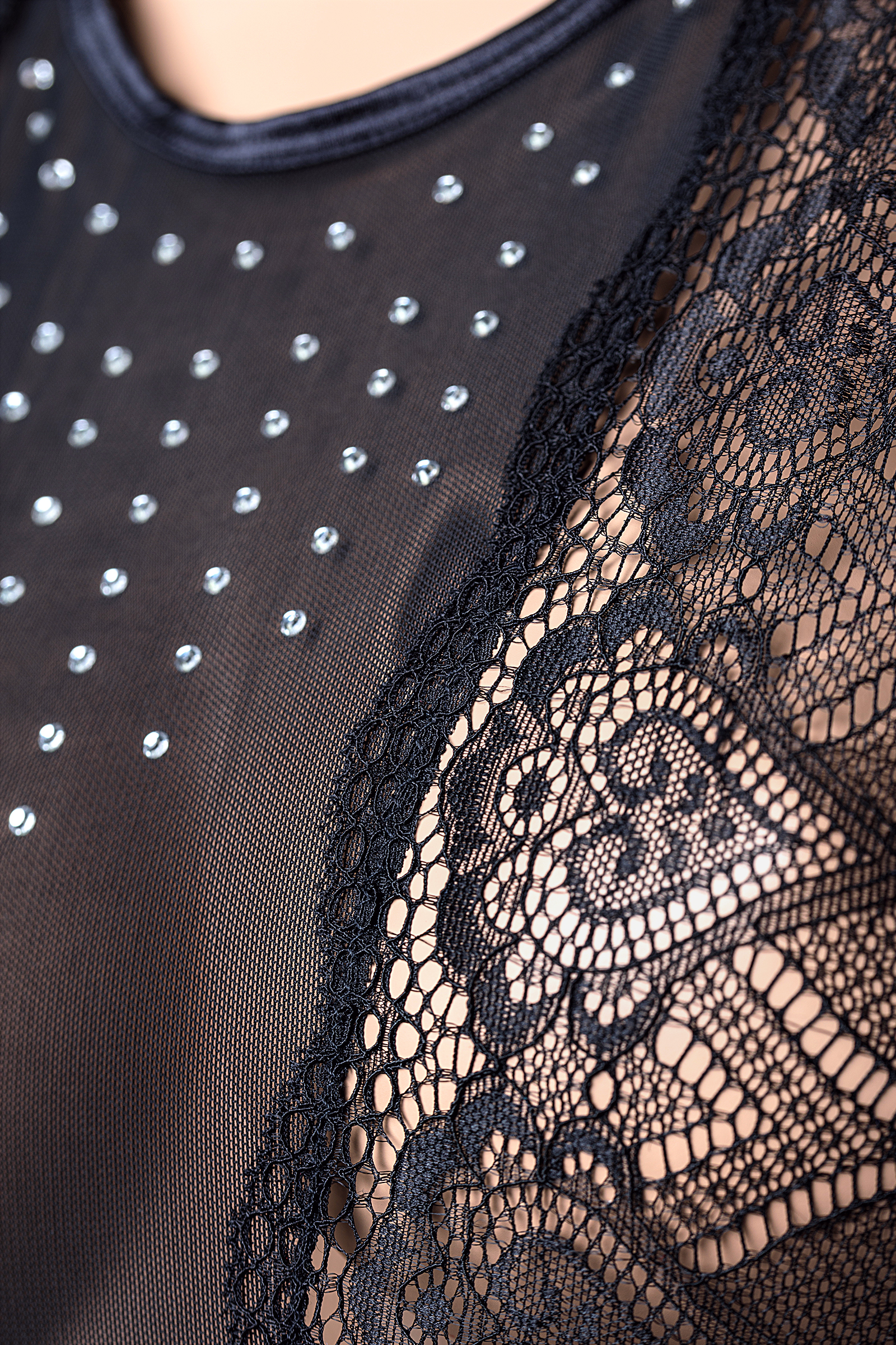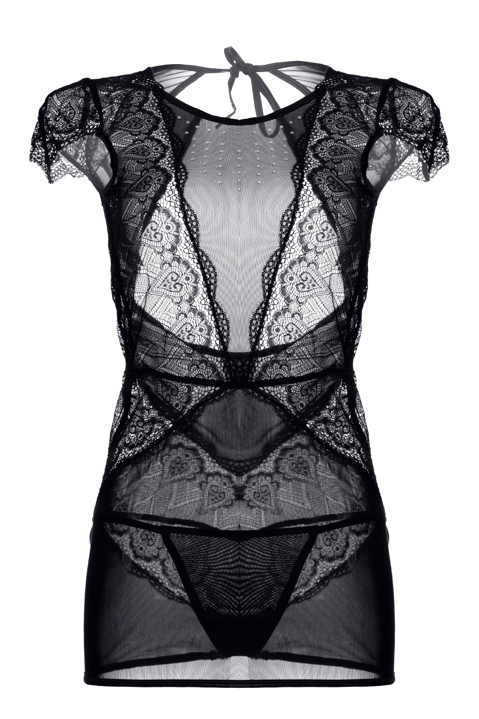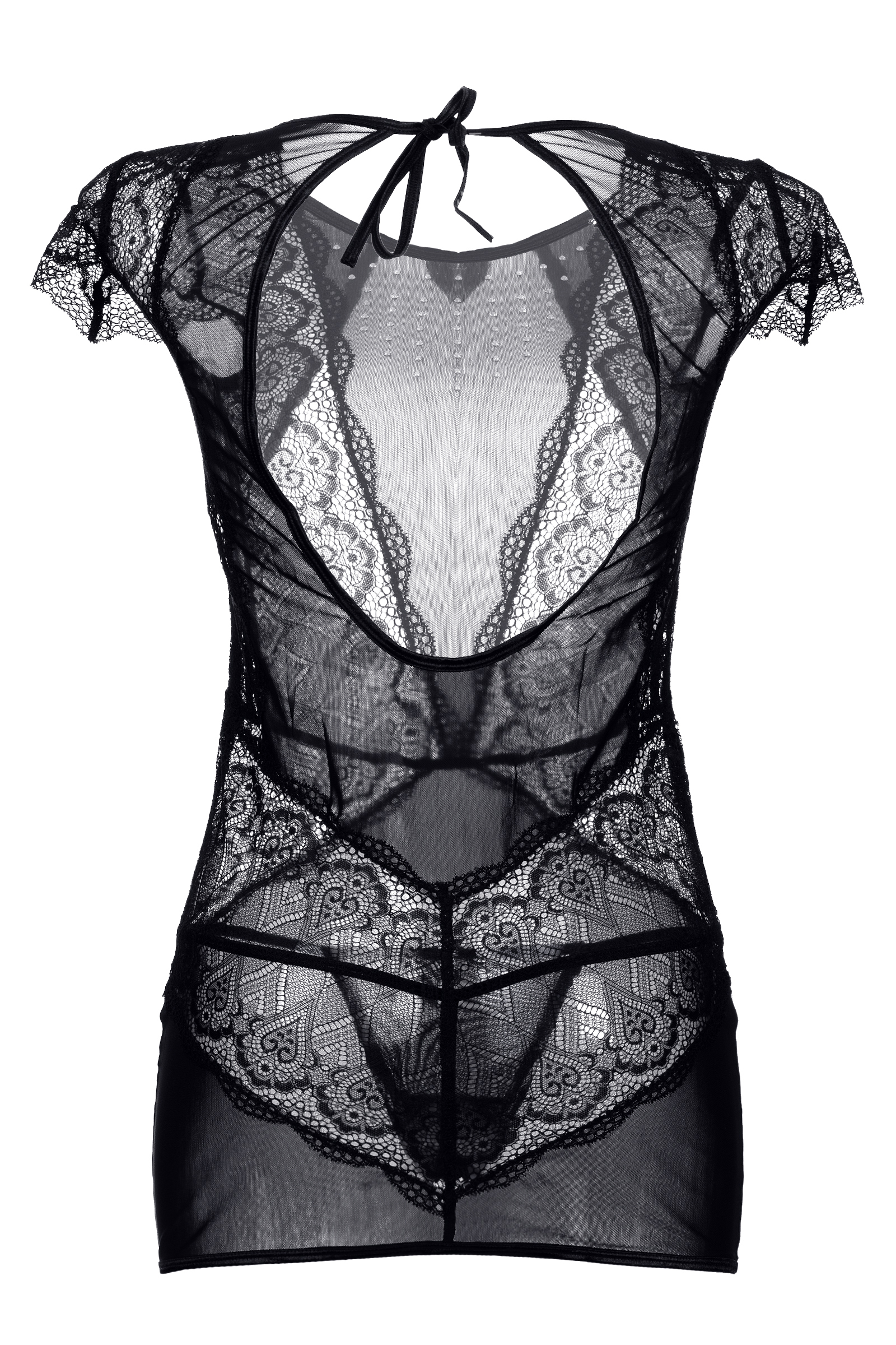 Платье со стразами и стринги Candy Girl Estelle, кружево, сетка, черный, XL 840042-BLK-XL
