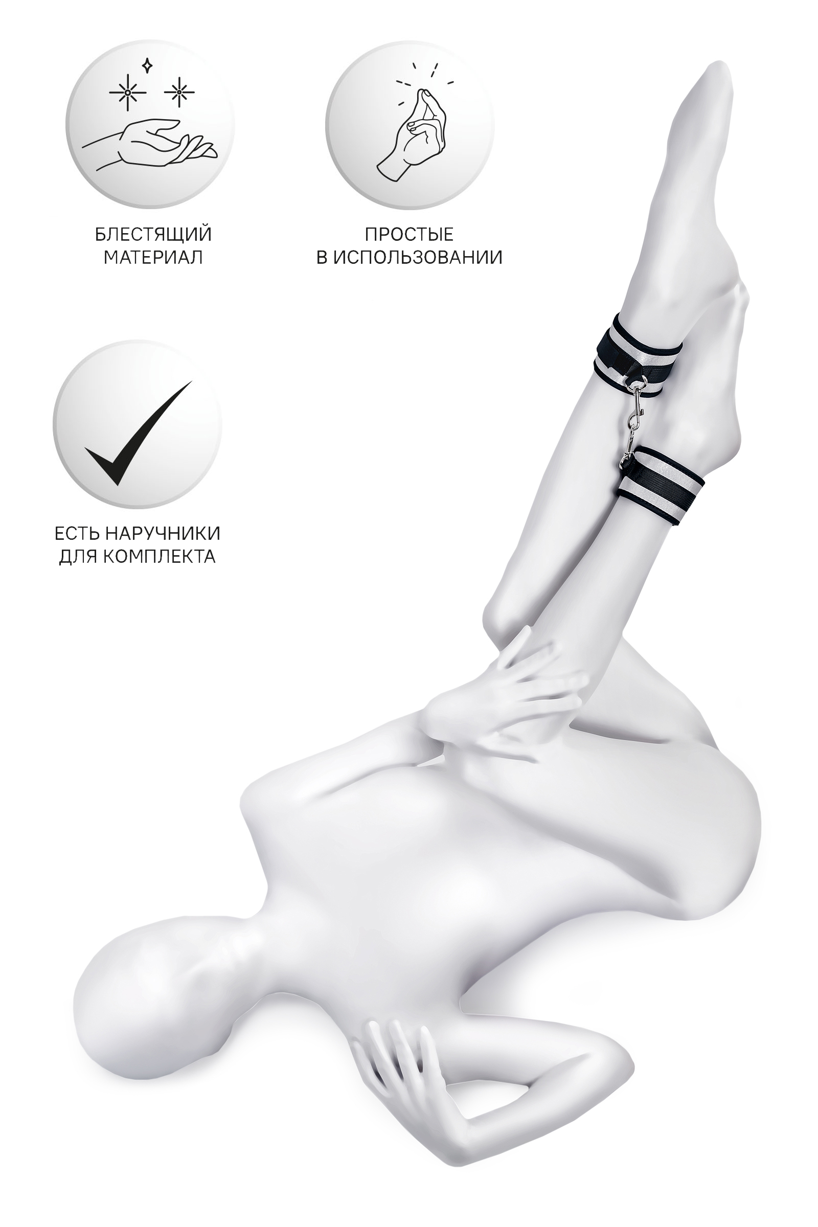 Оковы — классический предмет для игры в подчинение, обязательный для начинающих и опытных поклонников БДСМ.Блестящий во всех смыслах аксессуар для ограничения свободы – сатиновый материал поблескивает, когда на него падает свет. Необычное сочетание серебристого и черного, совсем нехарактерное для классического исполнения аксессуаров в стиле БДСМ, придает изюминку и новизну. Подчиненный с таким аксессуаром выглядит неотразимым.Застежка велкро позволяет зафиксировать ноги любого размера. Между собой поножи скрепляются карабинами, практически не оставляя свободы действий. Никакого послабления, только полное подчинение своему Доминанту. Используйте дополнительно цепочку для расширенных возможностей фиксации положения ног.Начните игру в подчинение с этим аксессуаром, и вы поймете, как развивать свою чувственность с помощью ограничения свободы одного из партнеров. Дополните комплект аксессуарами — ошейником, кляпом, наручниками и продемонстрируйте что значит грубое обращение и полный контроль над свободой.Материал: полиэстер, полипропиленЦвет: черно-серебристыйДлина: 28,5 смШирина: 5,5 смДлина сцепки: 8 см