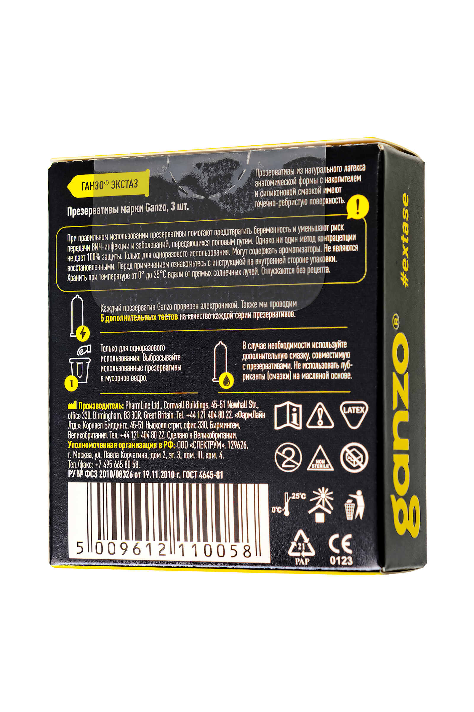 Чувство комфорта, которое обеспечивают анатомические презервативы с рельефом и точками Ganzo Extase, будет по достоинству оценено многими мужчинами. А вот рельеф и точки этих презервативов доставят исключительное удовольствие женщинам. И всё это вкупе с безупречной безопасностью! Толщина стенки 0,06 мм, легко надеваются и отлично сидят “по фигуре”.Ganzo – презервативный бренд родом из Великобритании, сочетающие в себе качество и доступную стоимость. Все презервативы проходят через 5-ступенчатую систему тестирования электроникой. Натуральный латекс премиального качества и гипоаллергенная смазка на силиконовой основе в составе обеспечат гладкое скольжение во время фрикций. Обязательная сертификация подтверждает качество и безопасность продукции Ganzo.