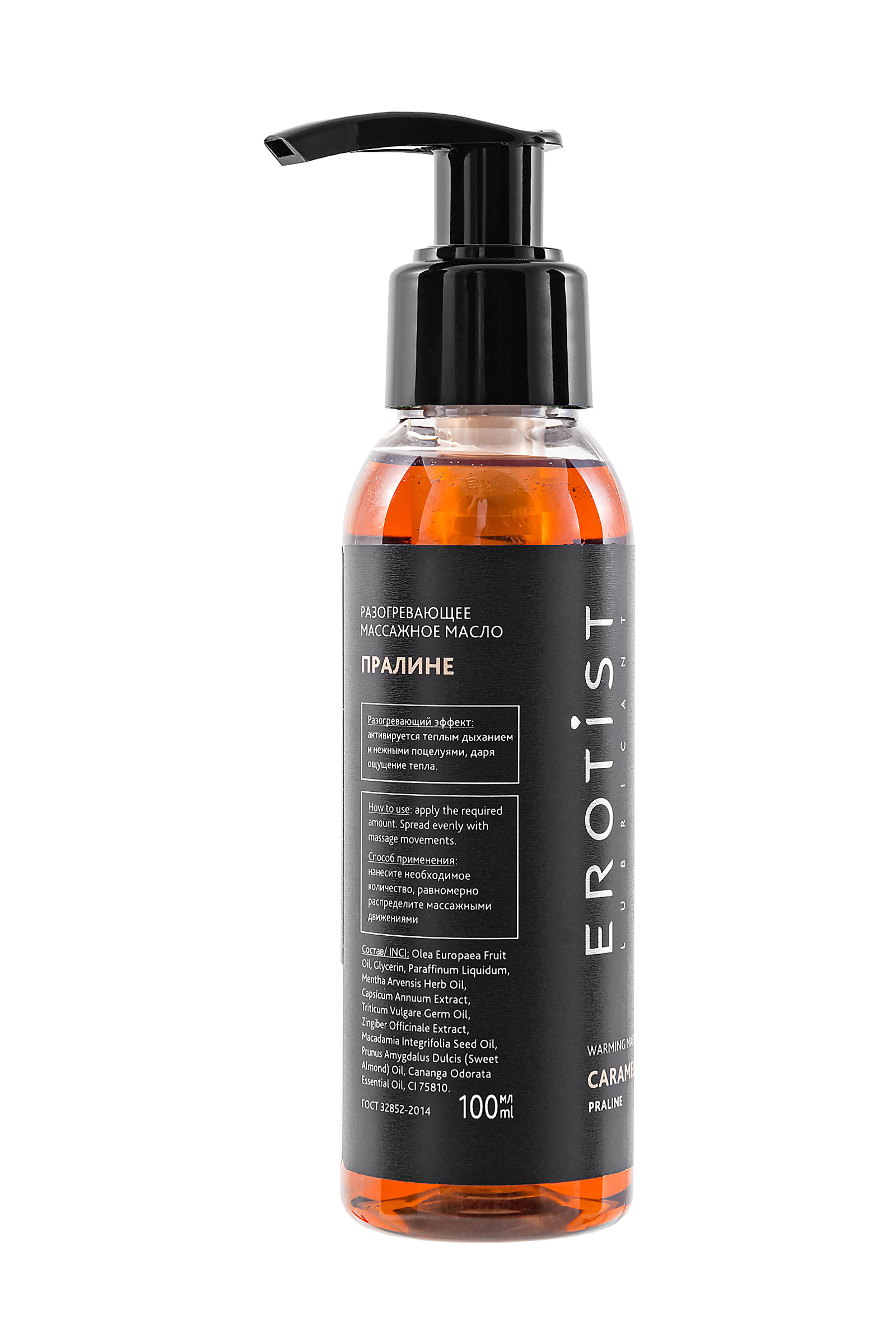 Масло «Пралине» из линейки Erotist Caramel Club создано для гурманов. Сладкий орехово-шоколадный аромат превращает массаж в соблазнительный ритуал, где тепло и нежность переплетаются с атмосферой удовольствия.Базу формулы составляют масла оливы, миндаля, макадамии и зародышей пшеницы, которые питают кожу, делая её мягкой и бархатистой. Экстракты имбиря и стручкового перца стимулируют кровообращение и обеспечивают разогревающий эффект. Эфирное масло иланг-иланга добавляет чувственности и гармонизирует эмоциональный фон.Особенности:Гурманский аромат пралине погружает в атмосферу сладости и удовольствия.Разогревающий эффект усиливает восприятие прикосновений.Масло обладает лёгкой текстурой, не оставляет липкости.Отличный выбор для романтического вечера.Способ применения: Нанесите масло на кожу, разотрите лёгкими или более глубокими движениями. Под действием тепла аромат раскрывается особенно ярко, делая массаж насыщенным и соблазнительным.
