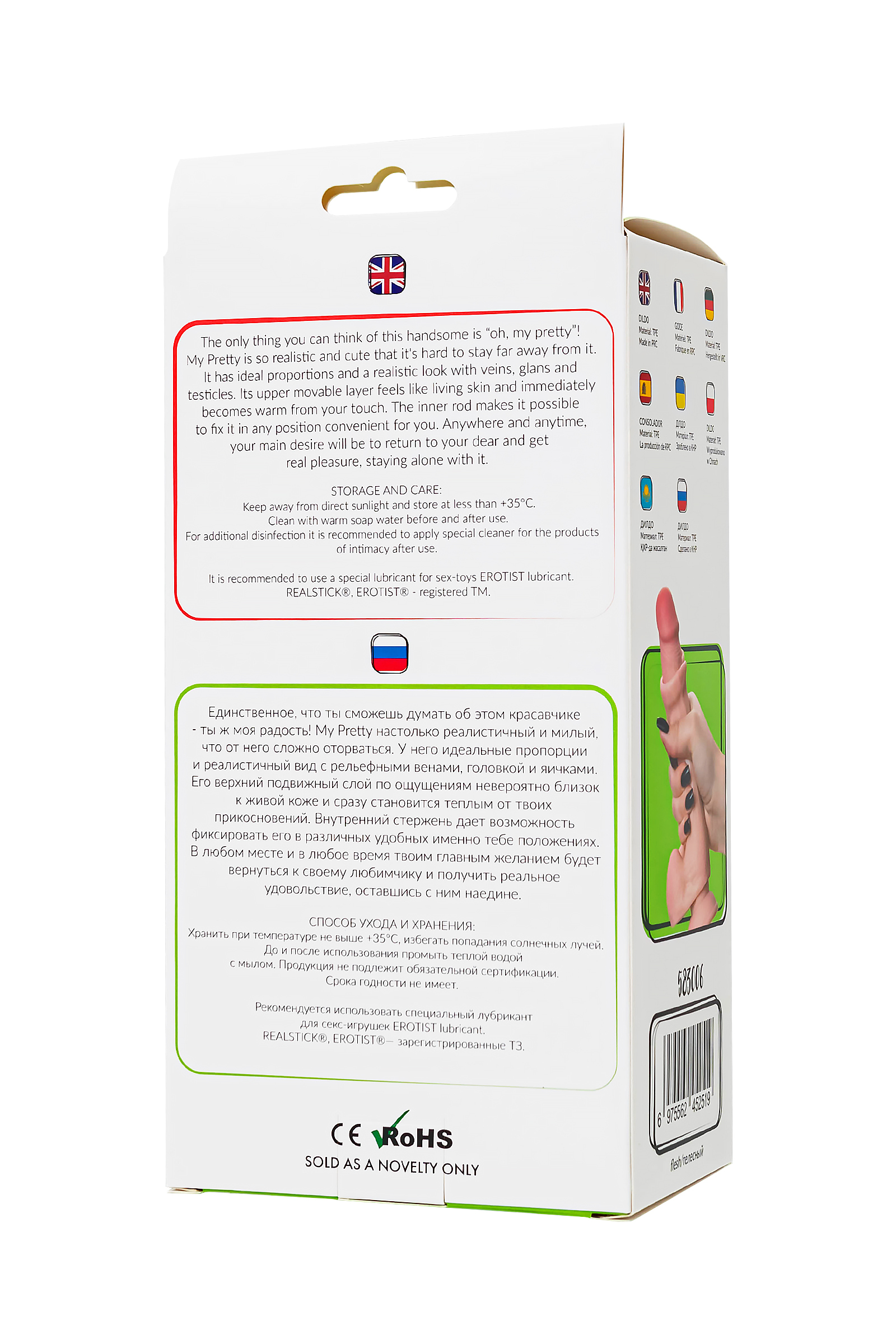 Встречайте My Pretty из коллекции My Babe от RealStick – ваш идеальный компаньон для интимных моментов. Этот аккуратный фаллоимитатор воплощает реализм с идеальными пропорциями, рельефными венами, натуральной головкой и яичками. Он создан для того, чтобы прикасаясь к нему, вы погружались в атмосферу настоящего контакта, словно к единственному в своем роде.С его длиной в 20 см и диаметром 3,5 см, My Pretty обещает полноценные несравненные ощущения. Внутренний стержень позволяет фиксировать игрушку в удобных для вас положениях, удовлетворяя ваши индивидуальные предпочтения. Вагинальный или анальный секс – выбор за вами, но не забудьте воспользоваться презервативом, если хотите побаловать себя анальными ласками. Упругая мошонка с присоской служат надежным ограничителем.Независимо от времени суток и места, вы будете мечтать вернуться к My Pretty, чтобы насладиться реальным удовольствием, оставшись с ним наедине. Реалистичный материал TPE, пластичность и быстрое принятие температуры тела делают My Pretty идеальным выбором. А его мощная присоска позволяет закрепить игрушку на любой ровной поверхности, открывая новые грани удовольствия. Дополнительный бонус - возможность использования в ванне или душе.Чтобы игрушка радовала вас долго, используйте лубрикант на водной основе и пудру для игрушек.Материал - TPEОттягивающаяся кожа Общая длина 20 см