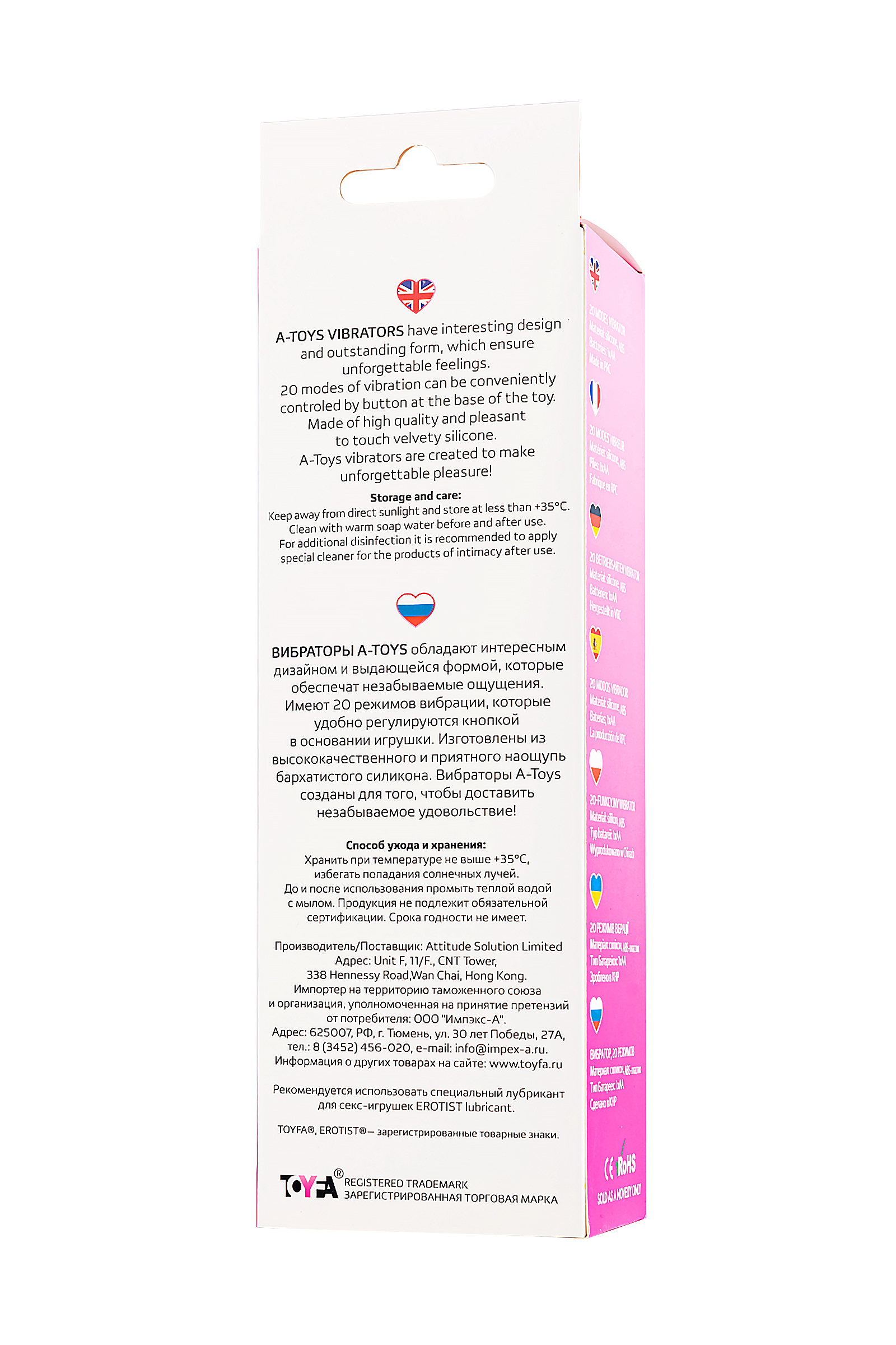 Вибраторы A-Toys Liby — обладают интересным дизайном и выдающейся формой, которые обеспечат незабываемые ощущения. Имеют 20 режимов вибрации, которые удобно регулируются кнопкой в основании игрушки. Изготовлены из высококачественного и приятного наощупь, бархатистого силикона.Вибраторы A-Toys созданы для того, чтобы доставить незабываемое удовольствие!