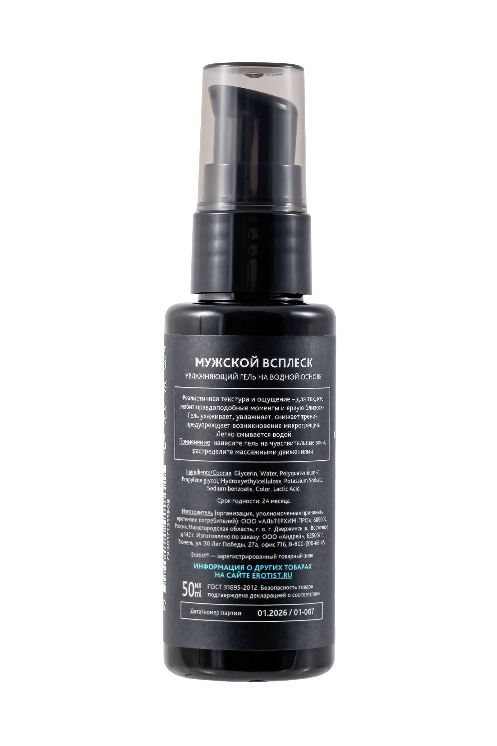 Erotist MAN SPLASH (Мужской всплеск) — современное средство интимного комфорта, созданное специально для пользователей, которые ценят ощущение уверенности, защиту кожи и максимальное удовольствие без раздражения.Особенностью продукта является его внешний вид и текстура: лубрикант визуально и по консистенции приближен к естественному мужскому эякуляту, создавая эффект реалистичной имитации. Это усиливает чувственность ощущений, делает процесс более естественным и комфортным, особенно для тех, кто ценит натуральность и максимальную близость к физиологическим ощущениям.Формула разработана с учетом особенностей чувствительной зоны. Поликватерниум-7 обеспечивает длительное скольжение, глубоко увлажняет кожу, делает её более мягкой и эластичной, а также образует тонкую защитную пленку, снижающую риск микроповреждений, сухости даже при интенсивном контакте.Молочная кислота поддерживает естественный уровень pH 4.5, близкий к физиологическому, помогает сохранять здоровую микрофлору, ускоряет восстановление кожи, уменьшает зуд и дискомфорт. Это особенно важно для мужчин с чувствительной кожей или склонностью к раздражениям после трения.В составе используются безопасные, проверенные компоненты, а также он имеет водную основу, благодаря этому лубрикант полностью совместим с презервативами и любыми секс-игрушками, не повреждает латекс и силикон, не липкий, не оставляет следов на коже и тканях, легко смывается обычной водой.Erotist MAN SPLASH (Мужской всплеск) — это выбор для тех, кто ценит комфорт, заботу о гигиене и качестве интимной жизни, ценит натуральные ощущения и реалистичную текстуру. Подходит как для соло-использования, так и для близости с партнером.Срок годности: 24 месяца