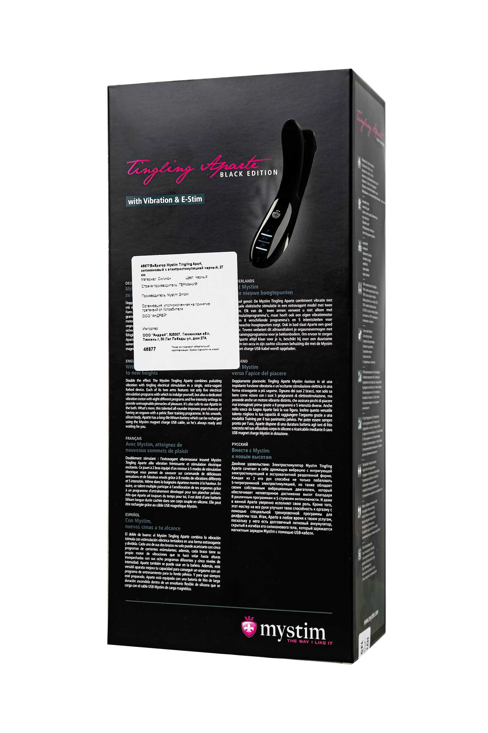 Двойной вибратор с электростимуляцией Mystim Tingling Apart — игрушка, которая легко заменяет собой сразу 5 секс-гаджетов.Электростимулятор. В арсенале Mystim Tingling Apart 5 режимов и 10 уровней интенсивности электроимпульсов — от дразнящей щекотки до уверенных толчков. Еще никогда сексуальная разрядка не была такой глобальной.Мощный водонепроницаемый вибратор. Под матовым силиконовым покрытием скрываются два резвых двигателя, каждый из которых способен разгоняться до 5-и скоростей в 8-и программах вибрации. И всем этим вы можете пользоваться даже в расслабляющей ванне.Стимулятор для эрогенных зон. Дерзкие «пальцы» этого вибратора — виртуозы грамотных прелюдий. Клитор, мошонка, шея, грудь, живот — просто приложите вибрирующую игрушку к любимому чувствительному месту, и возбуждение не заставит себя долго ждать.Тренажер Кегеля. Tingling Apart поддерживает программу тренировки интимных мышц. Эффективная миостимуляция не только укрепит мышцы тазового дна, но и выведет оргазм обоих партнеров на новый уровень.Анальный стимулятор. Нижний отросток вибратора активирует удовольствие в точке K и придает интимной игре еще больше остроты.А теперь самое невероятное — все функции можно совмещать или чередовать, а управляются они тремя кнопками. Вот что значит эргономичность по-немецки. Вот что значит многофункциональность Tingling Apart от Mystim.