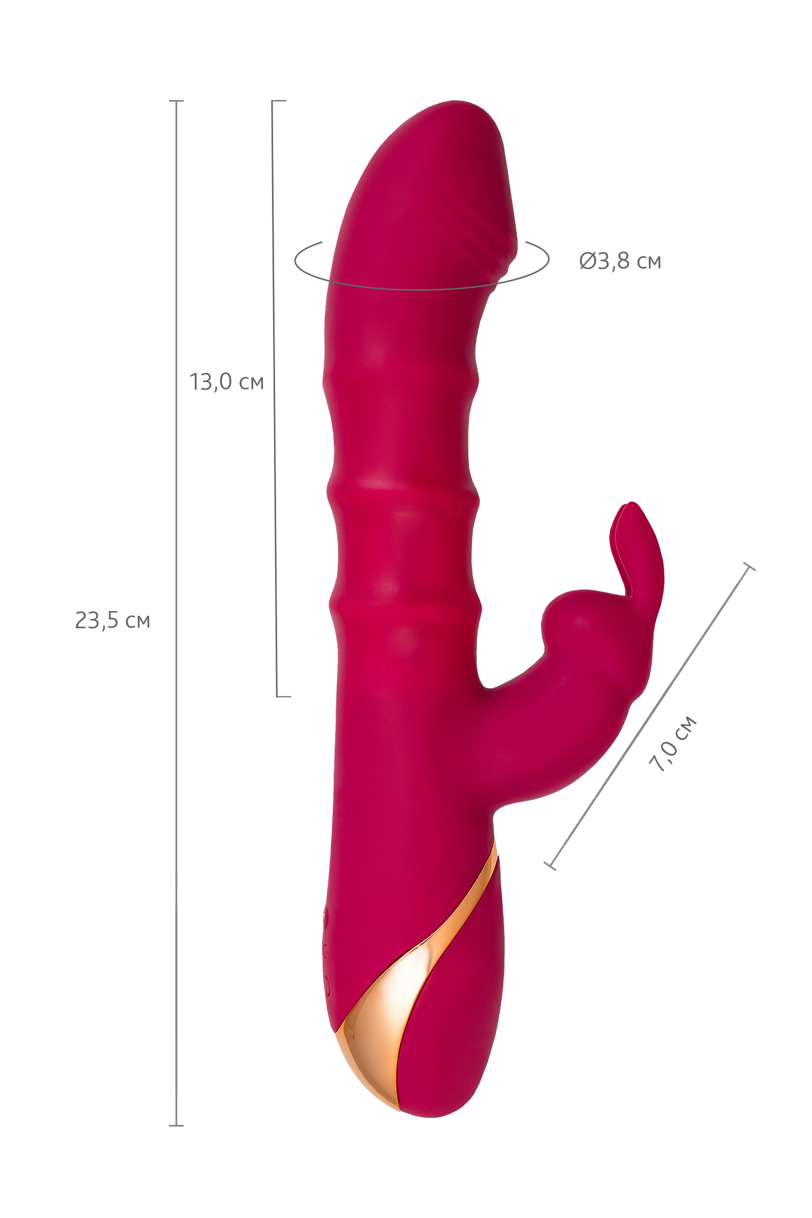TENTY от Jos — это твой билет в мир чувственных удовольствий и фантазий, где каждый момент наполнен страстью и удивительными ощущениями. Этот виброкролик с двигающимися кольцами создан для тех, кто готов исследовать новые горизонты наслаждения. Классическая форма вибратора идеально подходит для двойной стимуляции, мягко и интенсивно воздействуя на точку G и клитор одновременно. Ты почувствуешь, как твои желания пробуждаются с каждым движением.Фишка TENTY — это подвижные упругие кольца на стволе, которые совершают восхитительные фрикции вверх и вниз, заставляя тебя трепетать от удовольствия. А клиторальный стимулятор в форме забавного кролика со своими нежными ушками нежно касается самых чувствительных точек, выводя оргазмы на совершенно новый уровень. 10 режимов вибрации и 3 скорости движения колец позволяют настроить игрушку под любое твое настроение — от легкой ласки до мощного феерического финала.Изящный, роскошный дизайн в оттенке фуксии с золотыми вставками делает TENTY не просто вибратором, а настоящим аксессуаром для твоих самых интимных моментов. Бархатистый силикон приятно ощущается на коже, а компактные размеры делают использование максимально удобным и приятным.TENTY от Jos — это не просто вибратор, это твой партнер в мире оргазмов, созданный для того, чтобы ты баловала себя каждый день! Погружайся в вихрь удовольствия, и пусть каждый момент станет незабываемым!Общая длина: 23,5 смРабочая длина: 13 смДиаметр самой толстой части: 3,8 смДлина клиторального отростка: 7 см10 режимов вибрации3 скорости движения колецУровень влагозащиты IPX6 (защита от брызг)Время зарядки: 120 минут (с индикатором)Время работы: до 60 минутМатериал: шелковистый силикон и ABS-пластик