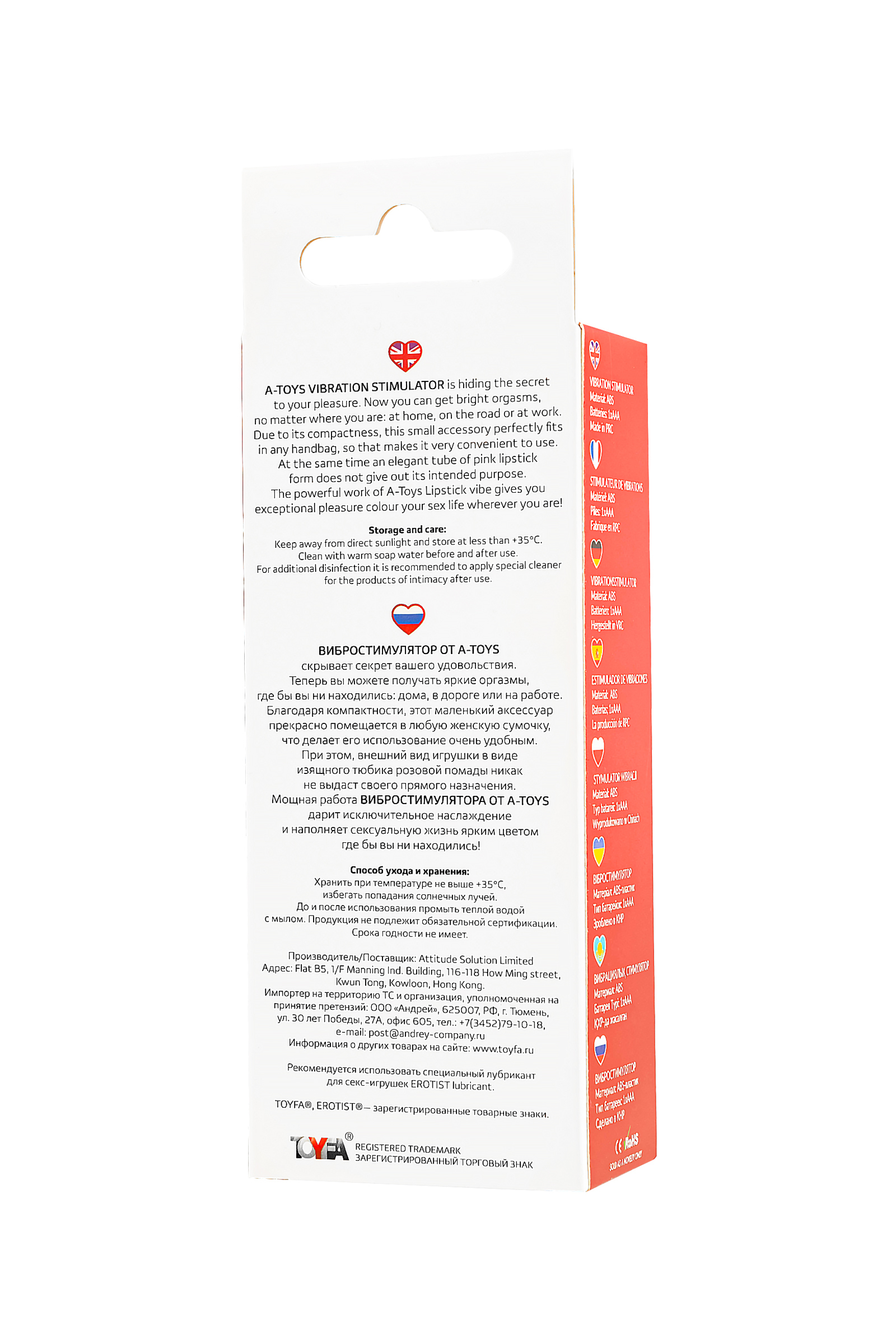 Вибростимулятор Lipstick от A-Toys скрывает секрет вашего удовольствия. Теперь вы можете получать яркие оргазмы, где бы вы ни находились: дома, в дороге или на работе. Благодаря компактности, этот маленький аксессуар прекрасно помещается в любую женскую сумочку, что делает его использование очень удобным.При этом, внешний вид игрушки в виде изящного тюбика розовой помады никак не выдаст своего прямого назначения.