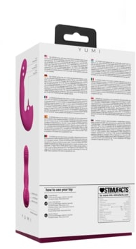 Yumi оснащен тремя независимо управляемыми моторами, чтобы подарить вам максимальное удовольствие. 1. Клиторальный язычок мягко, но интенсивно простимулирует клитор, вагинальный отросток с вибрацией и функцией «Манящее движение» — это все о чувственном массаже. 3-скоростной двигатель будет массировать вашу точку G и доведет вас до грани удовольствия и даже дальше. 10-скоростной вибромотор предназначен для воздействия на область зоны G, выводя ваше удовольствие на новые высоты. Изготовленный из 100% шелковистого гладкого медицинского силикона, YUMI водонепроницаем/можно погружать в воду по стандарту IPX7 и заряжается через магнитный USB-порт. 90-минутная зарядка обеспечит вам 45 минут безудержного удовольствия при уровне шума менее 60 дБ.