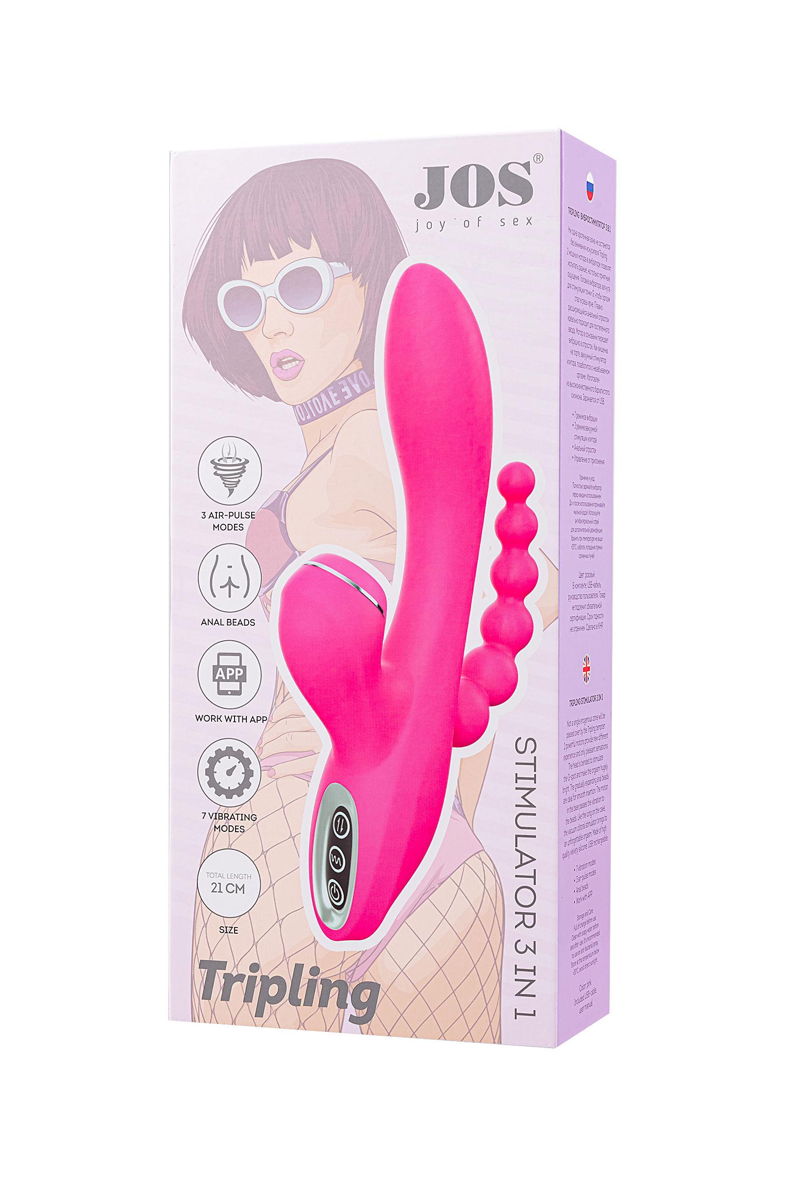 Позвольте TRIPLING стать вашим незаменимым спутником в мире удовольствия и экстаза! Этот вибростимулятор 3 в 1 охватит каждую эрогенную зону вашего тела, доставляя вам множество приятных сенсаций и незабываемых оргазмов.С двумя мощными моторами внутри, TRIPLING предлагает разнообразие ощущений, которые вы еще не испытывали. Его загнутая головка специально разработана для стимуляции точки G, чтобы каждый оргазм был в разы ярче и интенсивнее. Плавно расширяющийся анальный отросток-елочка идеально подходит для постепенного введения, принося непревзойденное удовольствие, даже при первом опыте. Мотор, находящийся в основании, передает мощные вибрации в анальный отросток, добавляя новые измерения наслаждения. И как вишенка на торте, вакуумный стимулятор клитора заботится о вашем экстатическом оргазме, оставляя вас с трепетными воспоминаниями.Изготовленный из высококачественного бархатистого силикона, TRIPLING обеспечивает максимальный комфорт и приятные тактильные ощущения. Его элегантный дизайн и гладкая текстура делают его не только мощным инструментом удовольствия, но и прекрасным аксессуаром для вашей коллекции интимных игрушек. Зарядите его с помощью USB-кабеля и наслаждайтесь его возбуждающими функциями в любое время и в любом месте.Три режима вакуумной стимуляции клитора и семь режимов вибрации позволят вам настроить интенсивность стимуляции под свои предпочтения и желания. TRIPLING создан для тех, кто ищет новые уровни удовольствия и жаждет удивительных ощущений.Не забывайте о правильном хранении и уходе за TRIPLING, чтобы он всегда оставался вашим верным спутником. Перед каждым использованием полностью зарядите вибростимулятор. После использования промойте его мыльной водой и дезинфицируйте антибактериальным спреем, чтобы сохранить его гигиеничность и долговечность.Погрузитесь в мир бесконечного наслаждения с TRIPLING и дайте волю своим фантазиям и желаниям.7 режимов вибрации3 режима вакуумной стимуляции клитораанальный отросток-елочказаряжается от USBбархатистый силиконобщая длина 21 смВремя зарядки: 120 минут Время работы на полной зарядке: 90 минут