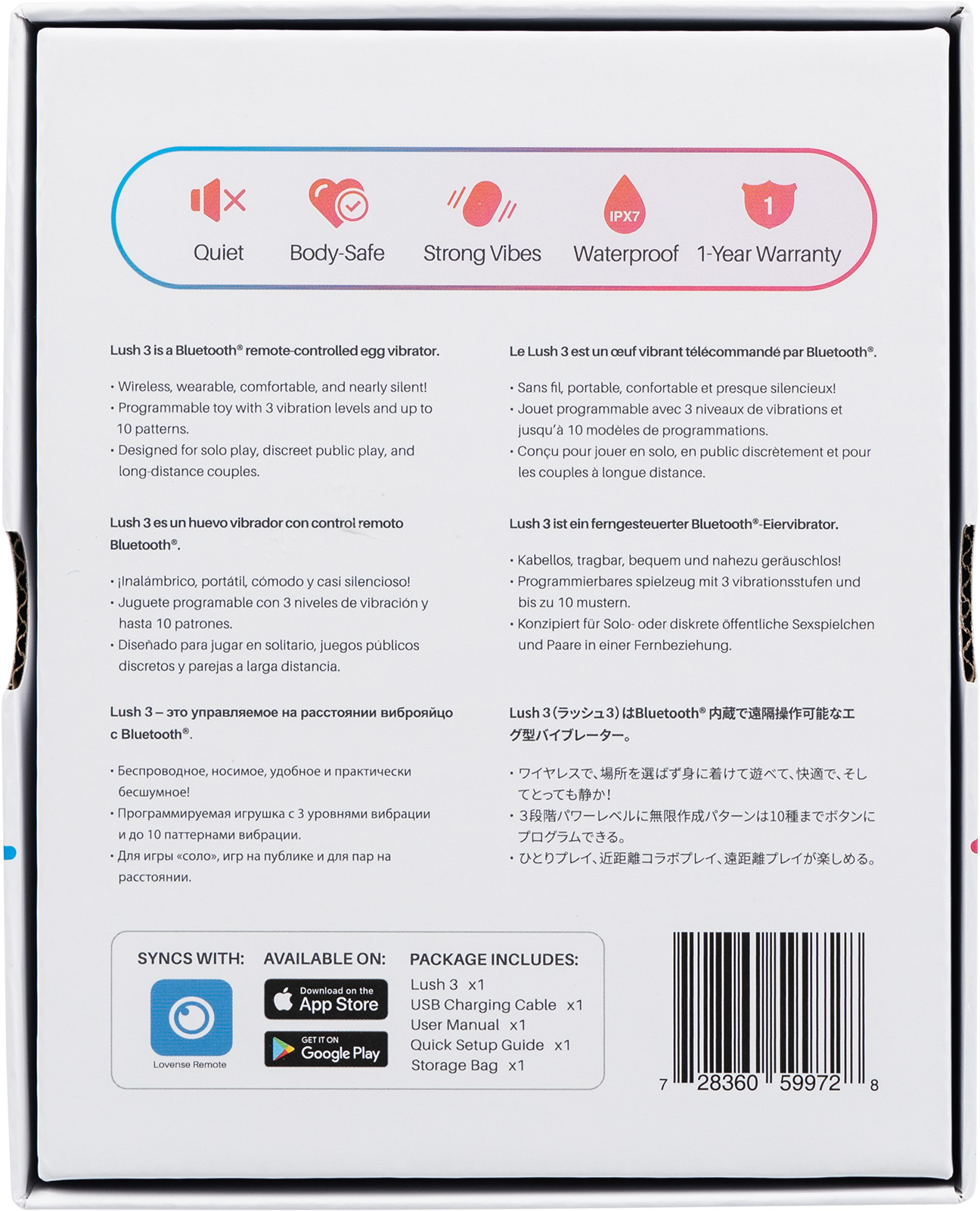 С Lush 3 вы сможете наслаждаться удивительно мощными вибрациями, которые с легкостью проникают в самые глубины вашего наслаждения. Он оснащен емким аккумулятором, который обеспечивает до 5 часов непрерывного использования. Соло игра, прелюдия или свидание с любимым в общественном месте… Lush 3 открывает для вас безграничные удовольствия.