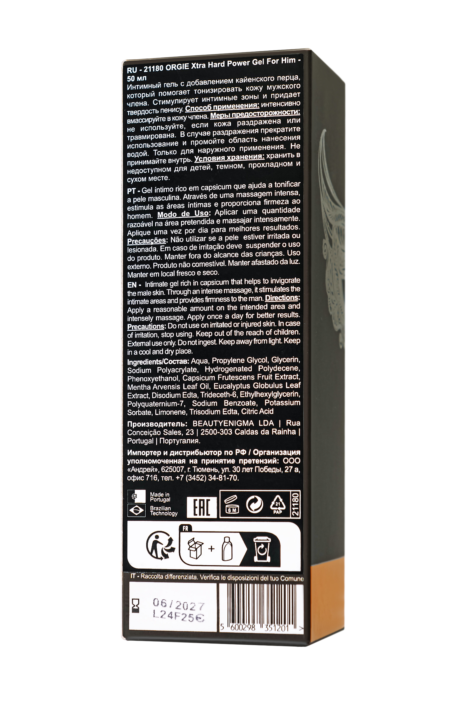 Интимный гель для мужчин Xtra Hard Power Gel – ваш надежный спутник в достижении более сильной эрекции и интенсивного возбуждения. Что делает Xtra Hard таким эффективным? В его основе стручковый перец и другие мощные стимулирующие ингредиенты. Они создают несравненное ощущение, активируя вашу силу и страсть.Xtra Hard Power Gel – это не просто средство для момента, это решение на каждый день. Ежедневное использование способствует еще более выдающимся результатам. Гель Xtra Hard Power Gel способен подарить более жесткую эрекцию и интенсивное возбуждение. Обогащенный перцем, этот гель создает взрыв энергии в ваших руках. Регулярное использование подарит вам уверенность и новые ощущения, разнообразив вашу интимную жизнь.Нанесите 2 или 3 порции на половой член легким массажем один раз в день для обеспечения максимального эффекта. А когда наступает момент страсти, повторите нанесение с массажем, чтобы стимулировать эрекцию и усилить возбуждение.Добейтесь максимального удовольствия и впечатляющей эрекции с Xtra Hard Power Gel – вашим спутником на пути к удовлетворению и уверенности.
