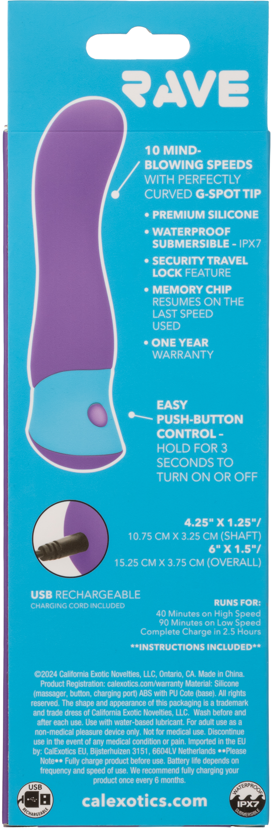 Добро пожаловать в мир глубокого удовольствия с Rave G-Vibe, прекрасно сделанным массажером, разработанным для удовлетворения ваших самых интимных желаний. Этот массажер может похвастаться идеально изогнутой формой, которая направлена прямо на зону G, гарантируя, что каждое ощущение будет глубоко прочувствовано и полностью наслаждено. Его искусно разработанный наконечник делает поиск и ласку этого желанного места волнующим, превращая каждый сеанс в исследование блаженства. Повысьте свое удовольствие с 10 скоростями интенсивной вибрации, которые предлагает Rave G-Vibe. Независимо от того, настроены ли вы на мягкую стимуляцию или мощную, этот вибратор может легко соответствовать вашей интенсивности.